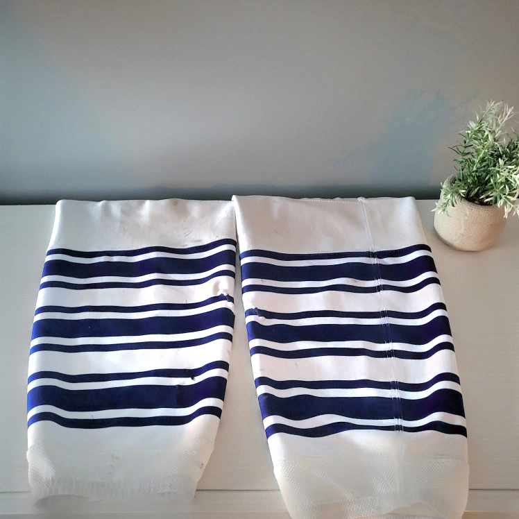 I'm hoping to sell these GAME WORN hockey socks! I've been cleaning out my basement and found this gem!💎 -Reebok hockey socks -Worn by a Maple Leafs player -Size large -Tight-fitting -Lightweight -Breathable -Pickup today!🚀 -Audley Rd and Bayly St!📍 -Checkout my reviews!⭐️ Let me know if you have any questions or offers. Thanks!