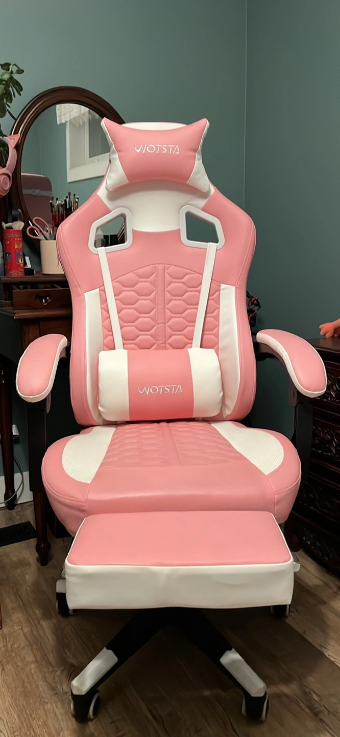 Includes headrest and lumbar pillows. Features a footrest. Comfortable and stylish. Seat adjustable height: 45 to 55 Centimetres. 360 degree swivel wheels. Recline function: Between 90-135°degree