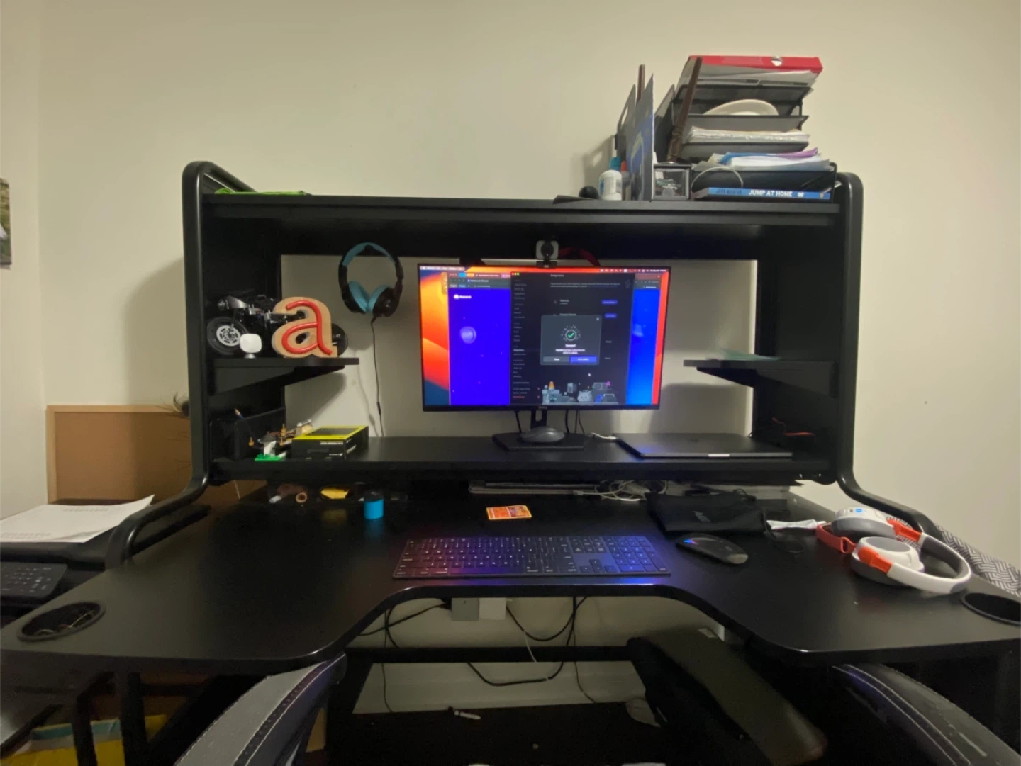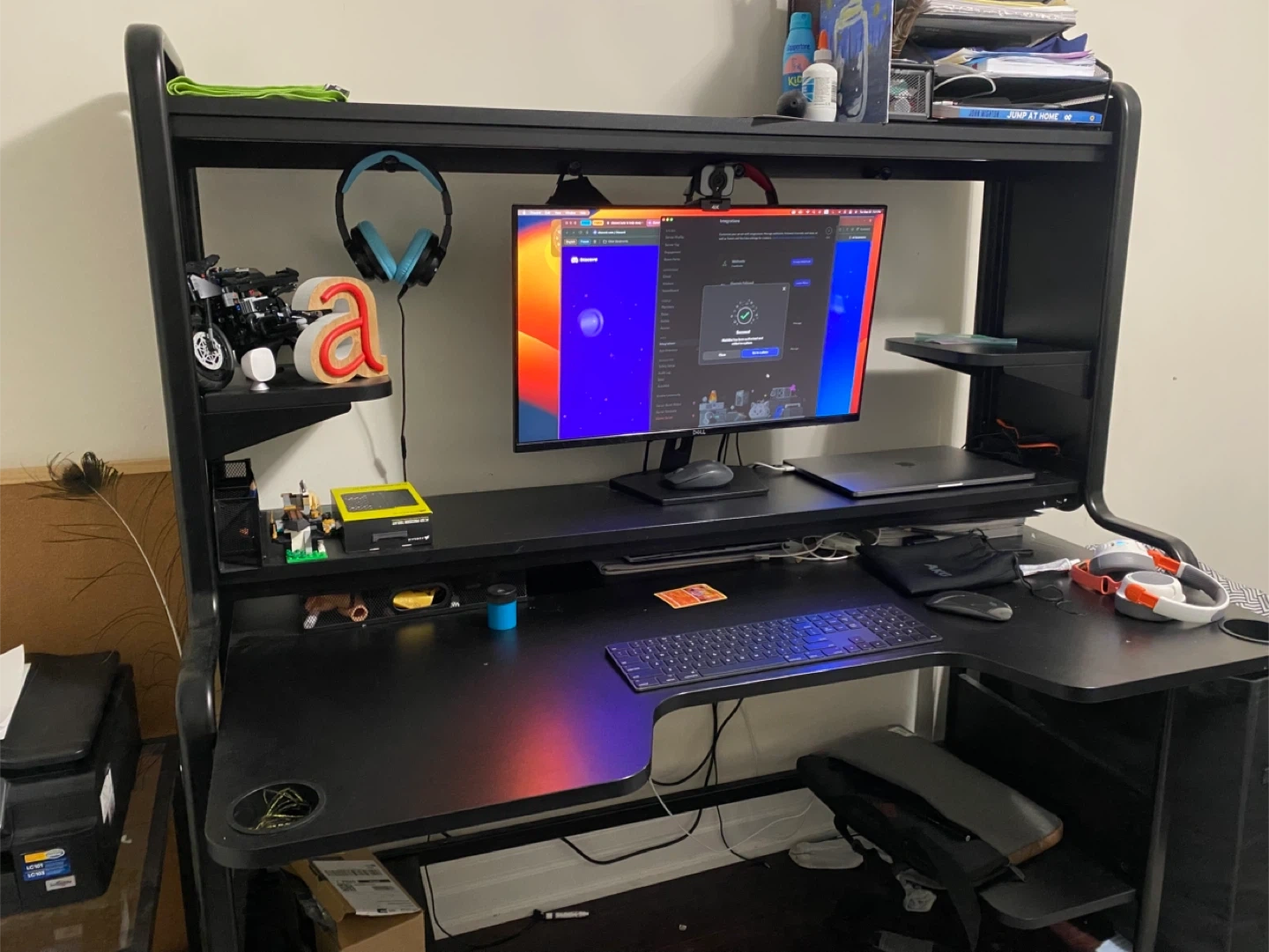 Selling a black gaming desk with a hutch. It's in great shape and provides lots of space for your setup. Perfect for a dedicated gaming area or a home office!