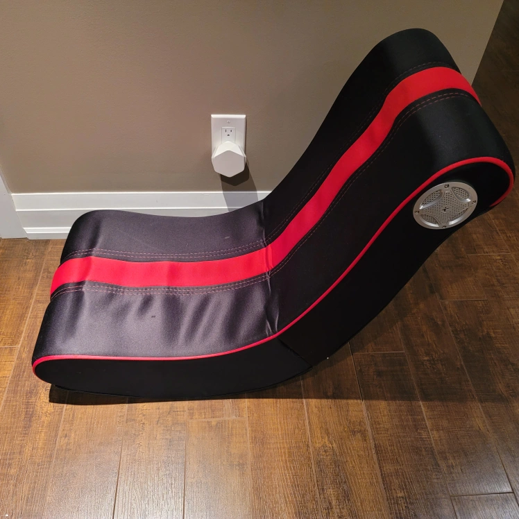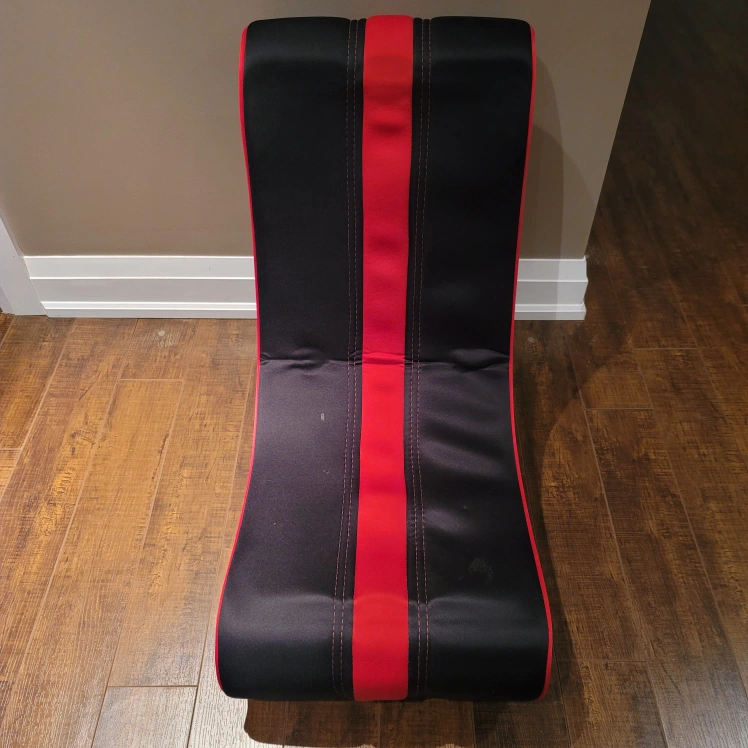Selling a gaming floor rocker chair in black with red accents. It's in great shape and perfect for long gaming sessions or just relaxing! It features a comfortable, ergonomic design that supports your back, so you can game or chill for hours. A great addition to any game room or chill space!