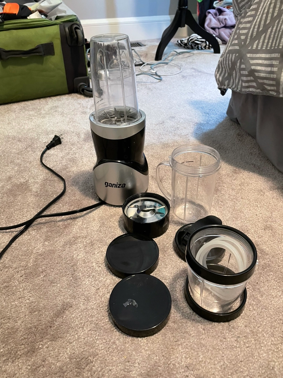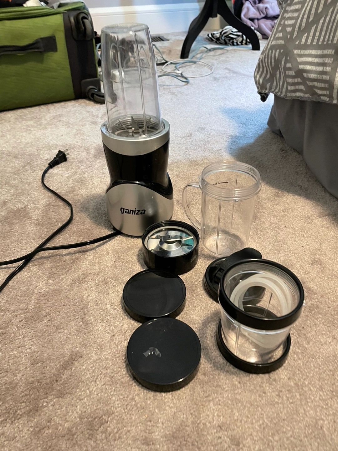 Selling a Ganiza personal blender. It comes with all the attachments shown in the pictures. Perfect for smoothies and shakes!
