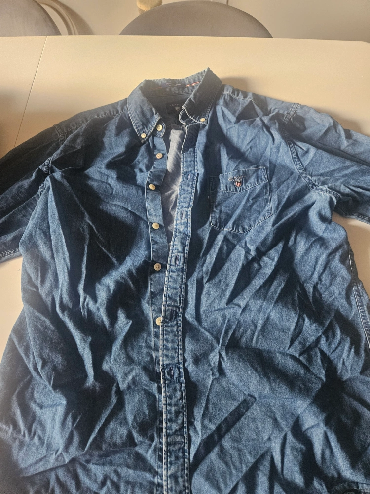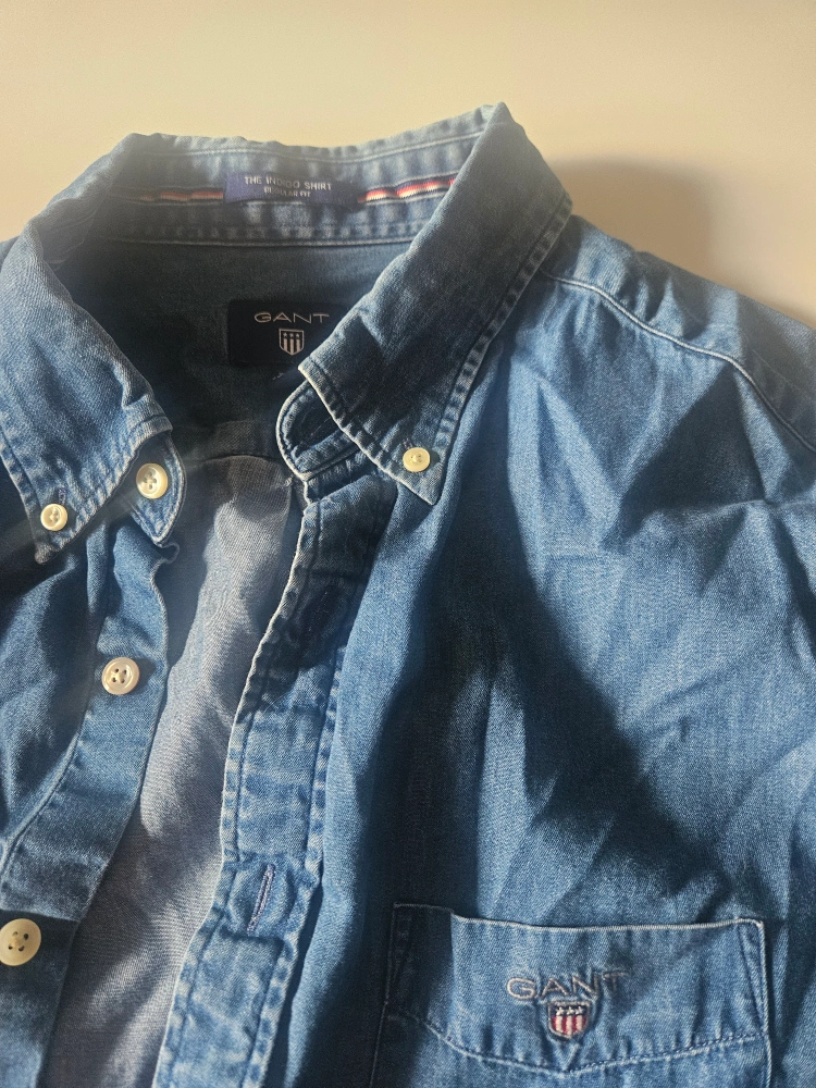 Here's a GANT 'The Indigo Shirt' in a lovely denim blue! It's in great condition and ready for a new home. This shirt is a classic and versatile addition to any wardrobe, perfect for a casual yet stylish look