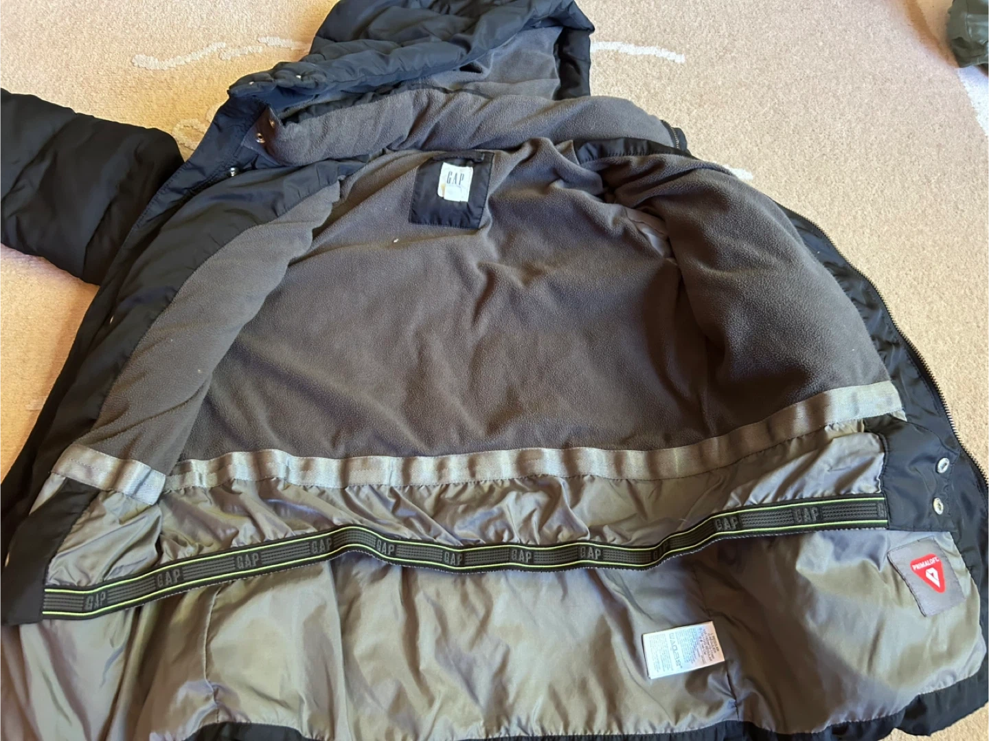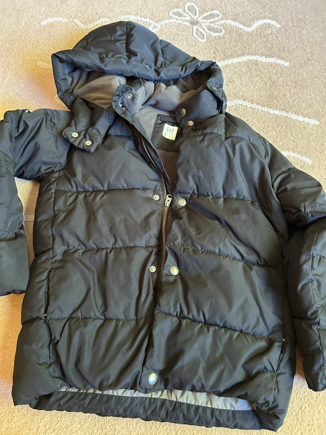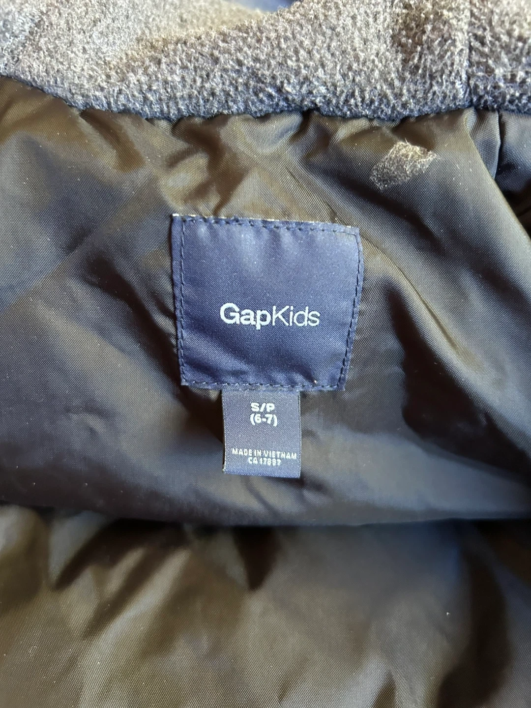 Selling a gently used Gap Kids black puffer jacket. It's a size S (6-7). The jacket is insulated with PrimaLoft material, so it's sure to keep your little one warm and cozy this winter!