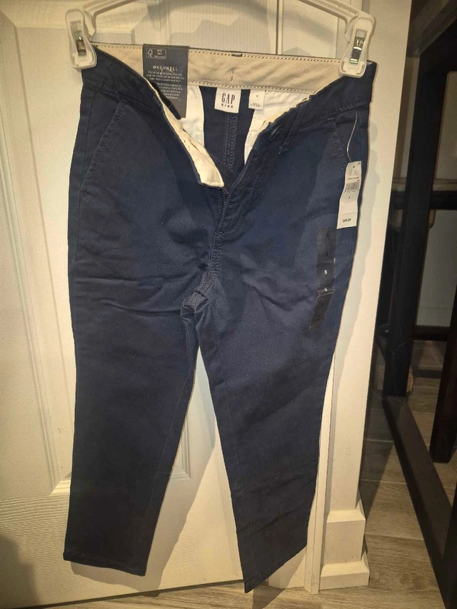 These are brand new Gap Kids navy blue twill pants, size 5, perfect for your stylish little one. They feature a classic design and durable fabric to withstand all their adventures. If the ad is up, the pants are available.