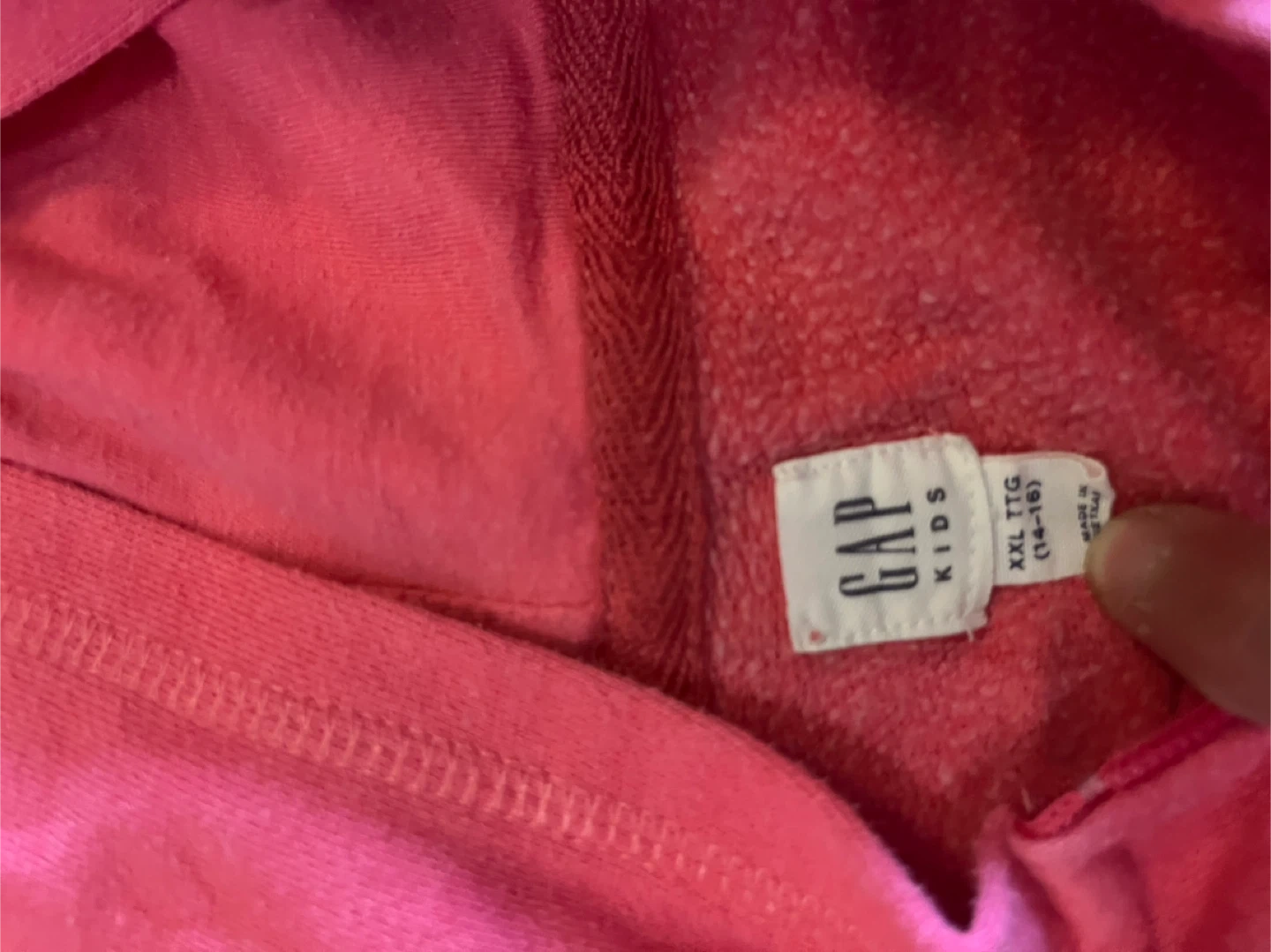 A cute pink hoodie from Gap Kids! The size is XXL, which fits kids aged 14-16. It's in good condition and ready for a new home