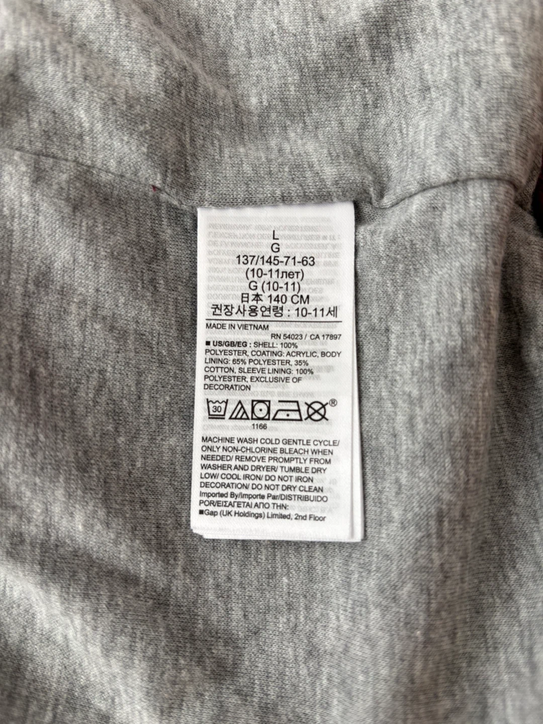 GAP Kids water-resistant hooded jacket. Amazing quality. It's a packable hood. Perfect for those in-between weather days! It’s brand new without tags. Size L (10-11yrs)
