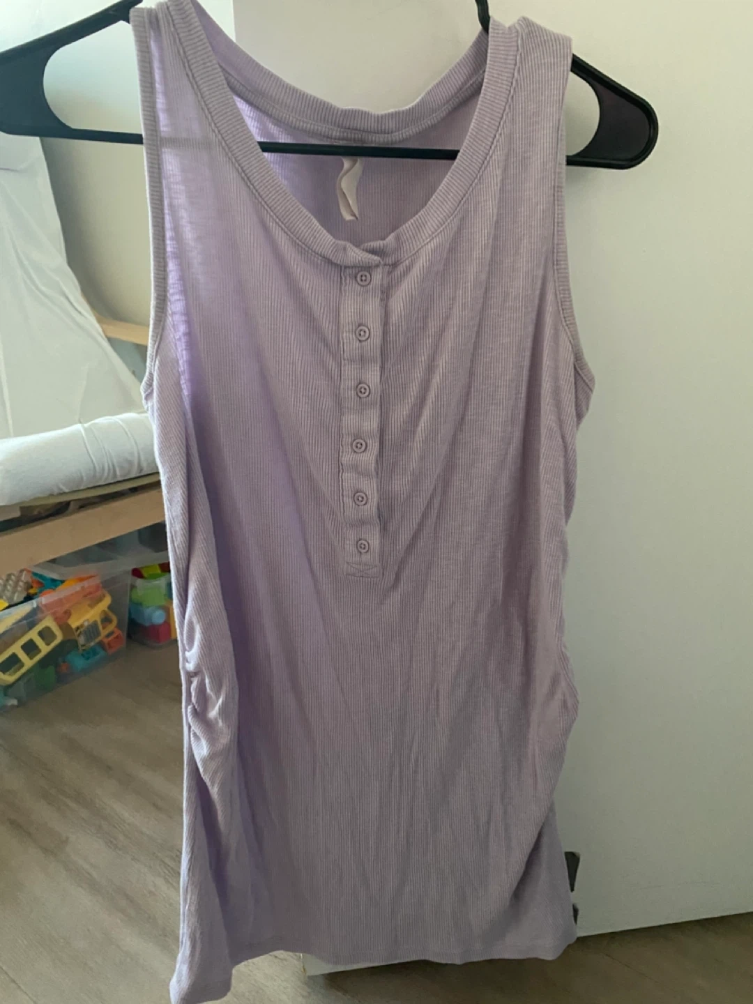Selling a cute lilac tank top from Gap! It's a size small and features a Henley-style button placket. Perfect for layering or wearing on its own during warmer weather. The material is soft and comfy!