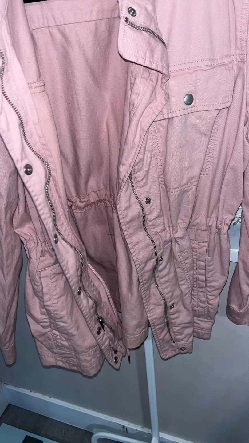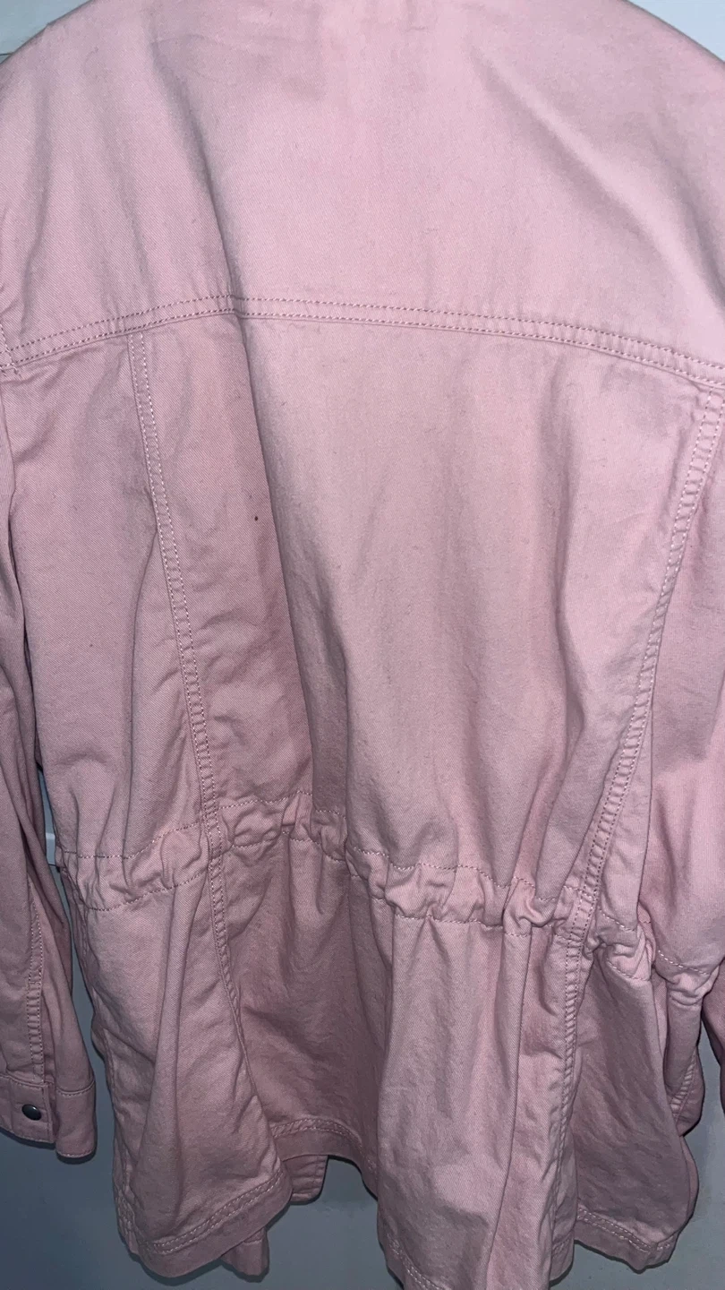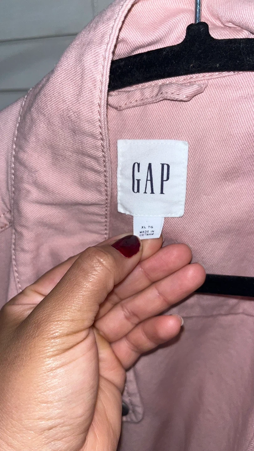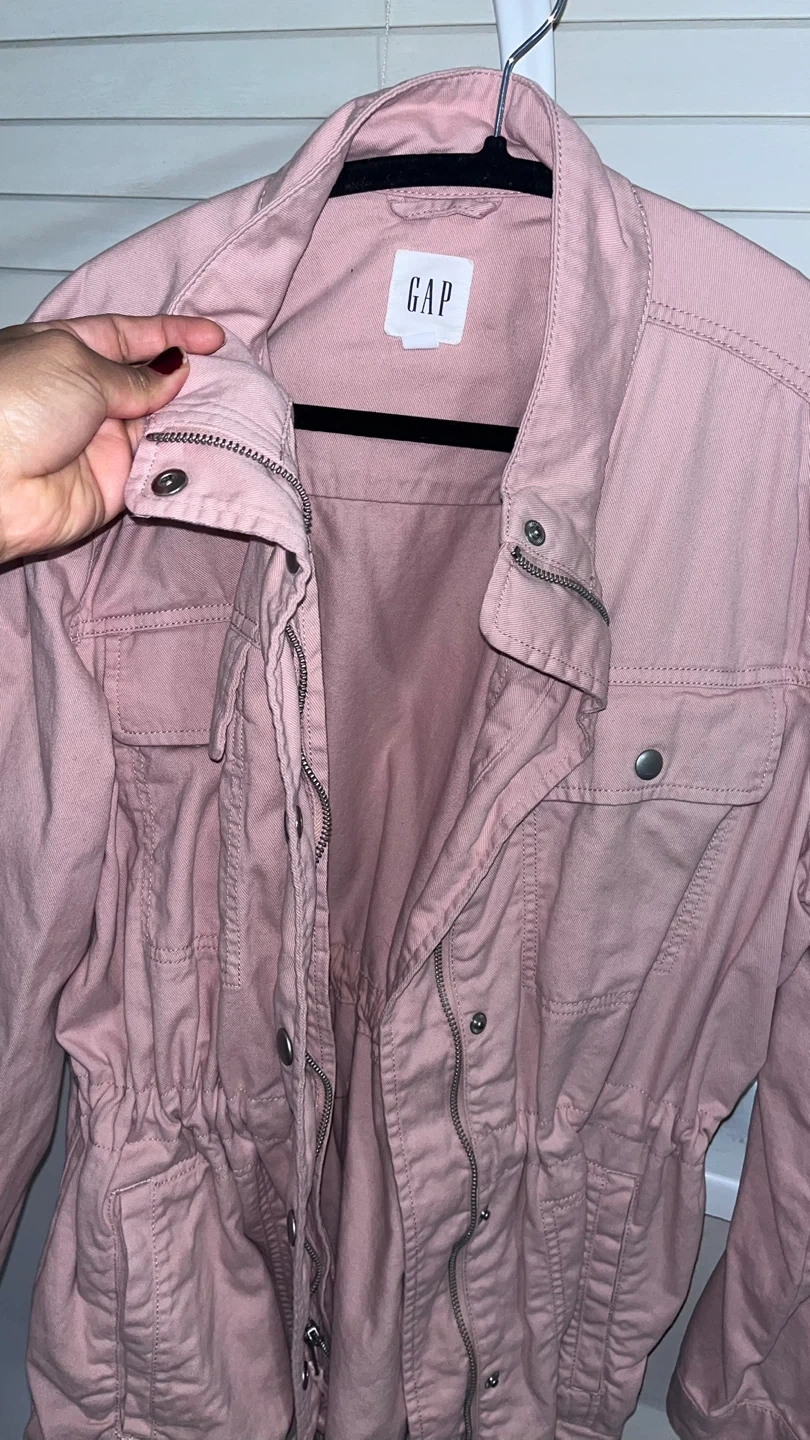 Selling a cute pink Gap jacket! It's a size XL and has a drawstring at the waist. Perfect for layering or wearing on its own on a mild day