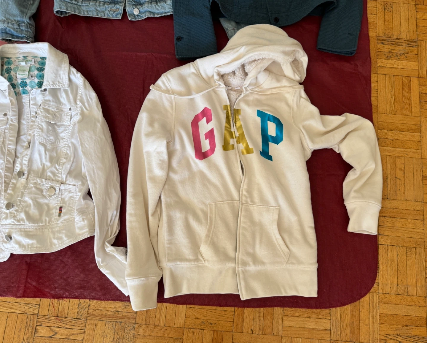 Show allGap White Zip-Up Hoodie and jackets selling as a lot