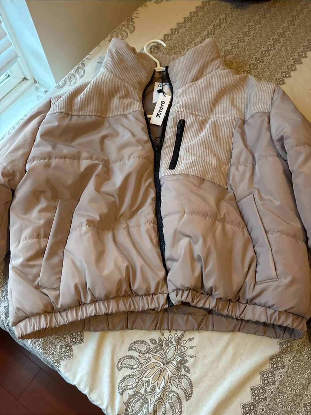 Cozy Garage puffer jacket in a lovely neutral colour! It's a size small and in great condition. Perfect for staying warm and stylish during the cooler months!