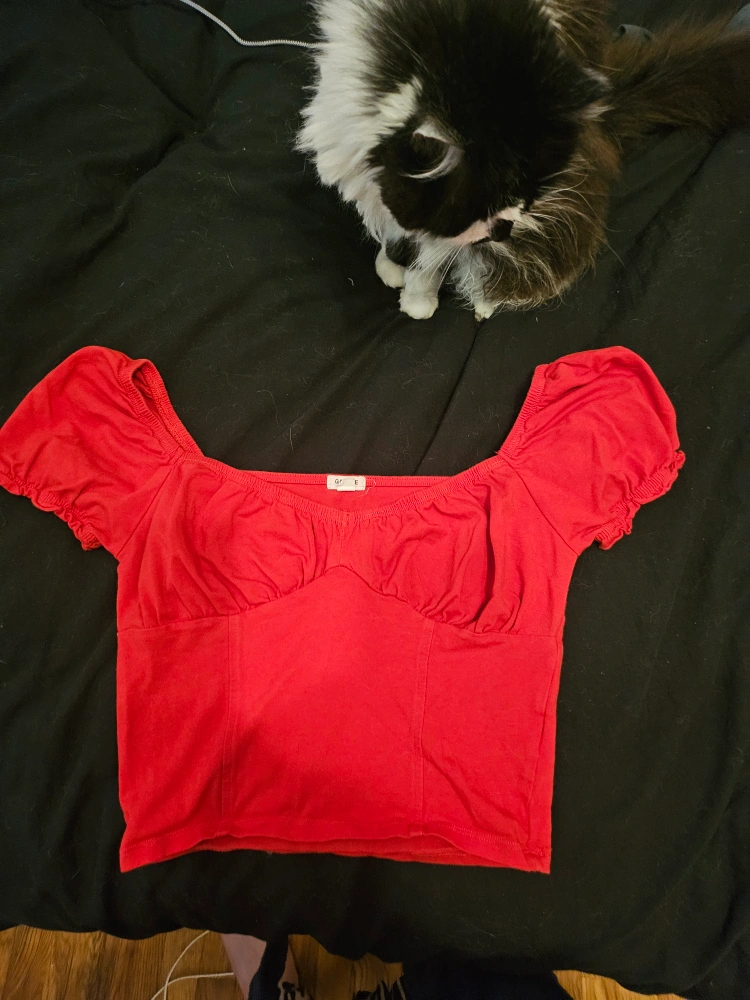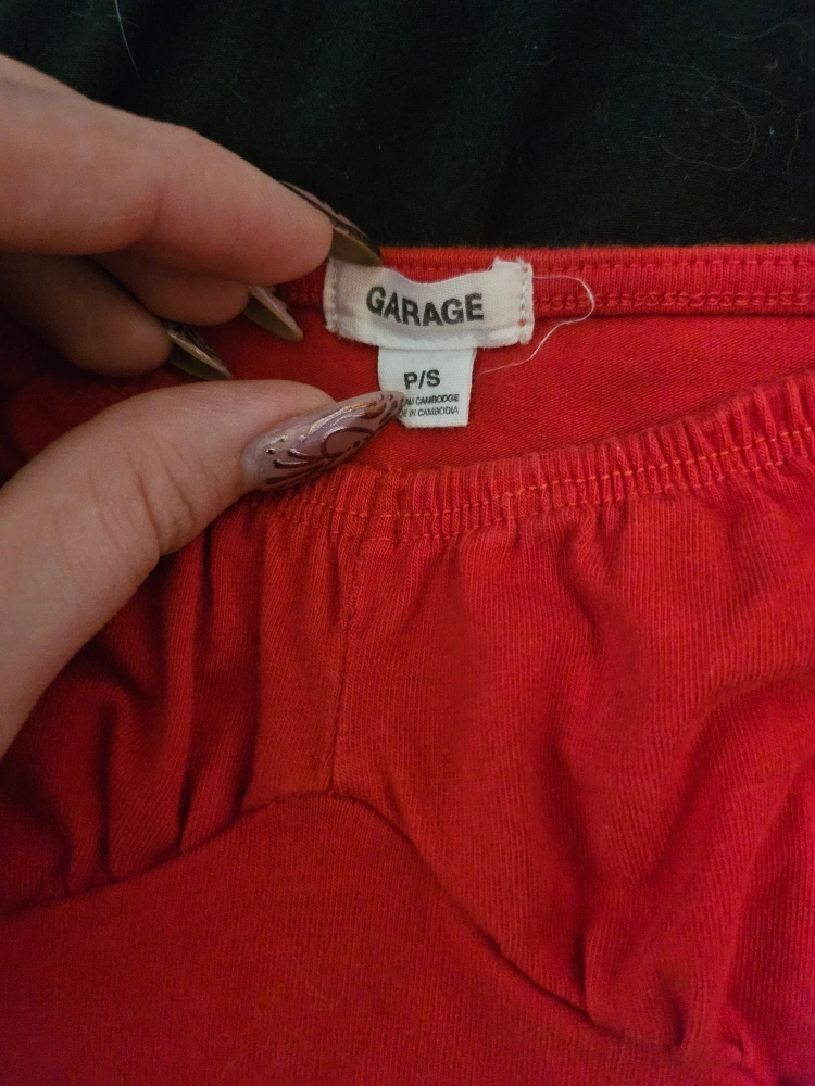 Selling a cute red top from Garage. It's a size P/S (Petite/Small) and in great condition!