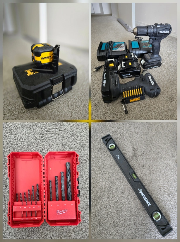 Clearing out my tool collection – everything was bought for one project only, many items are brand new, never used. Includes: • Power tools (Makita, DeWalt, Milwaukee) • Hand tools (pliers, clamps, levels, stud finder, drill bits, etc.) • Shop equipment (Ridgid shop vac, accessories) …and more. 💡 Most items are either brand new or used only once! 💵 Price: Ask for details – individual pricing available. 📍 Pick-up near Guildford, Surrey BC 👉 Feel free to message for photos or to discuss bundle deals.