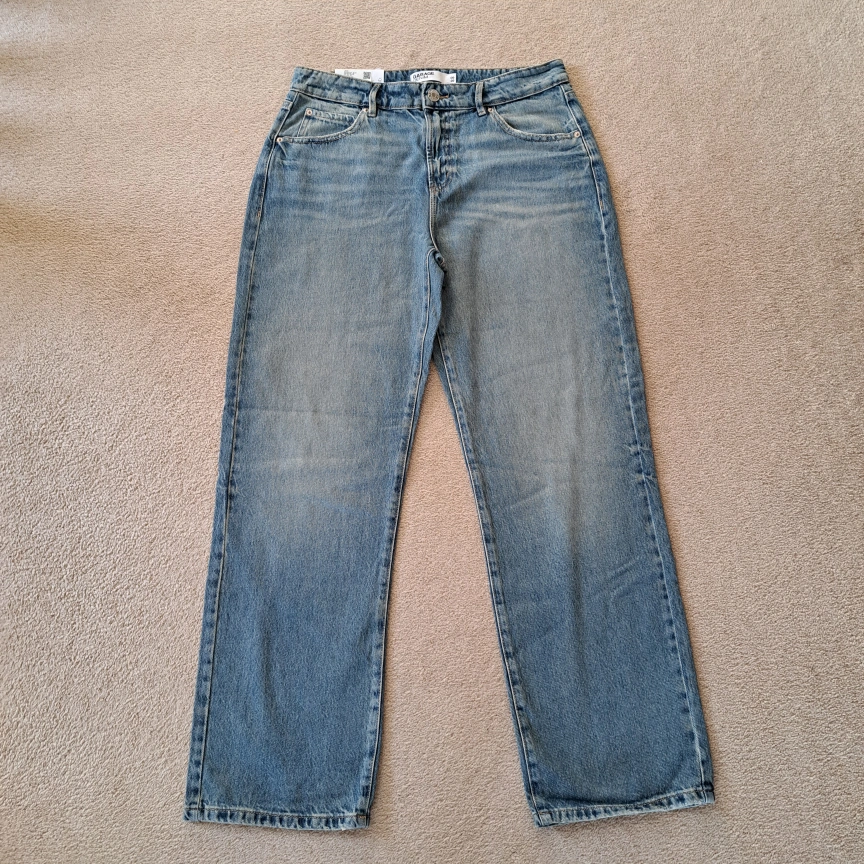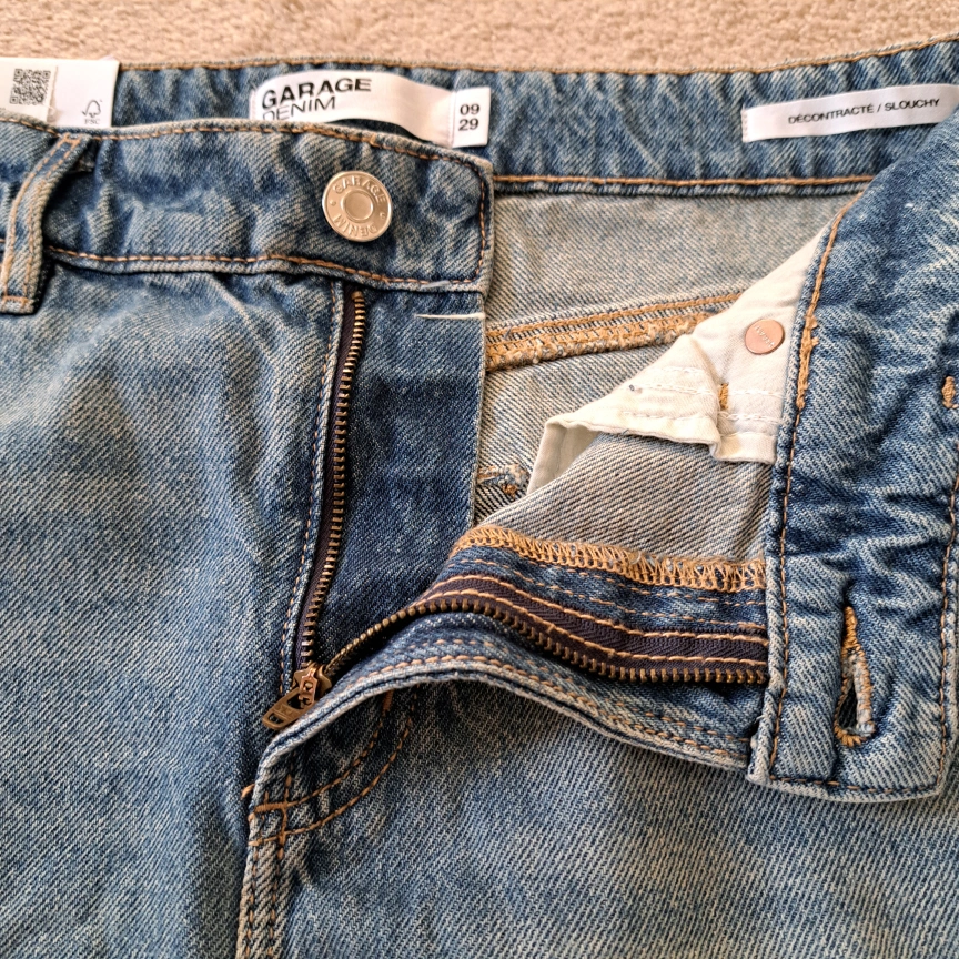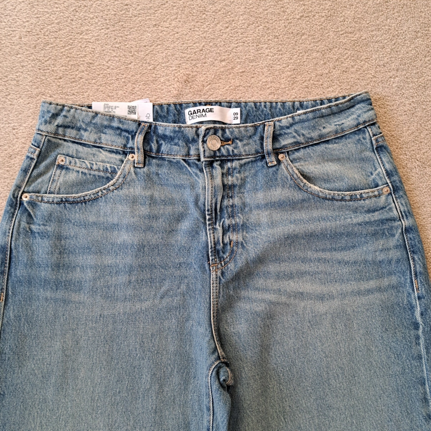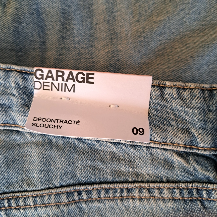 Garage Slouchy denim, new with tags. From the Manufacturer: You’re in your chill era! Relaxed fit, drop crotch, the perfect vibe for your spotted-in-public celeb moment. These straight leg jeans come in authentic non-stretch denim for an effortless flex. Slouchy and effortless... enough said! Five-pocket styling Straight fit, slouchy 75% cotton, 25% organic cotton Machine washable Size: 29 (9) Coloyr: aster blue Approximate measurements laid flat: Waist across: 16: Rise: 11" Inseam: 32"