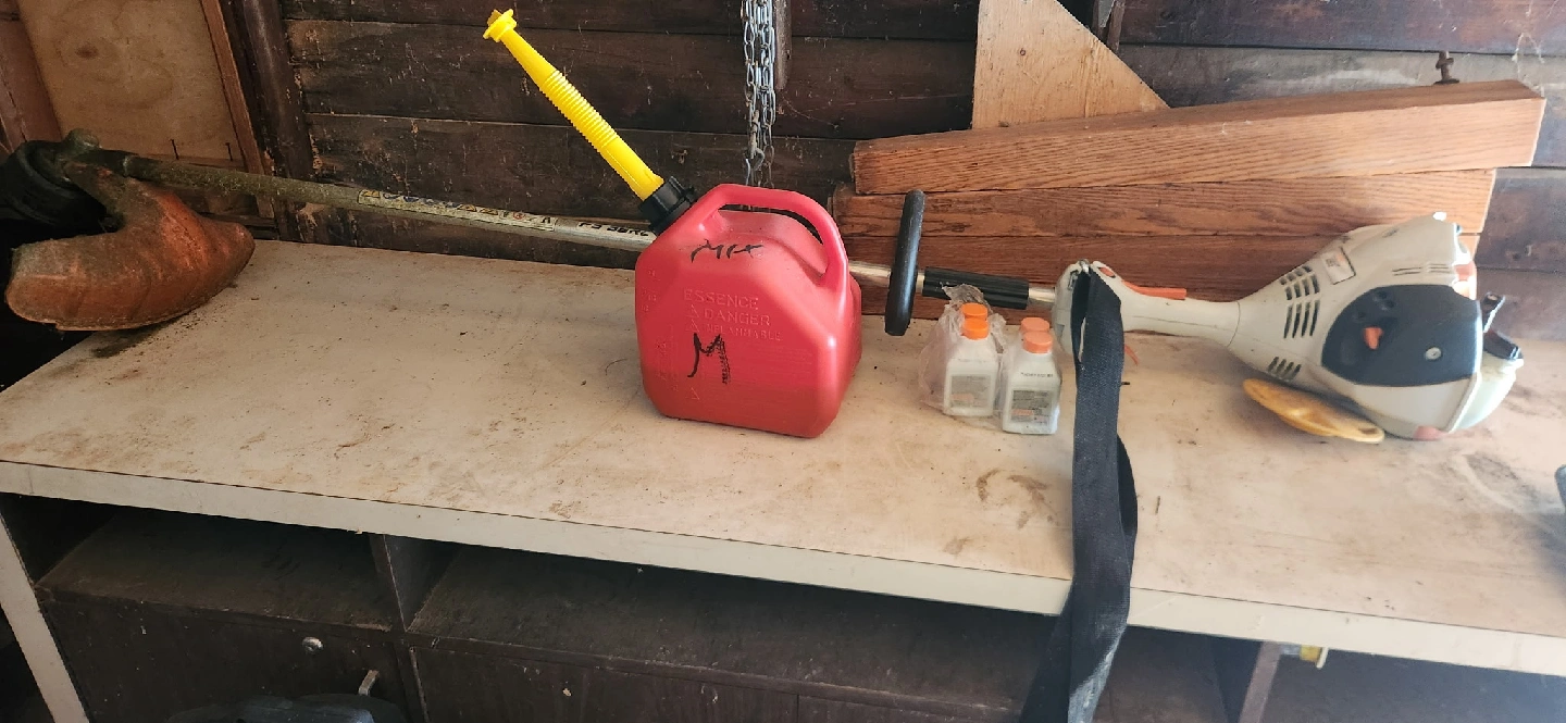 2 stroke engine with 4 bottles of extra oil, string and gas can with mix Great condition