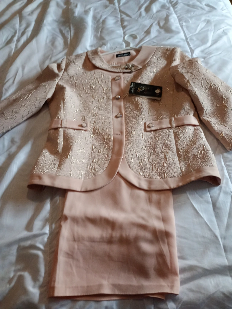 Here's a lovely peach-coloured pant suit for women. The brand is Gayslanny. It's in great condition and ready for a new home!