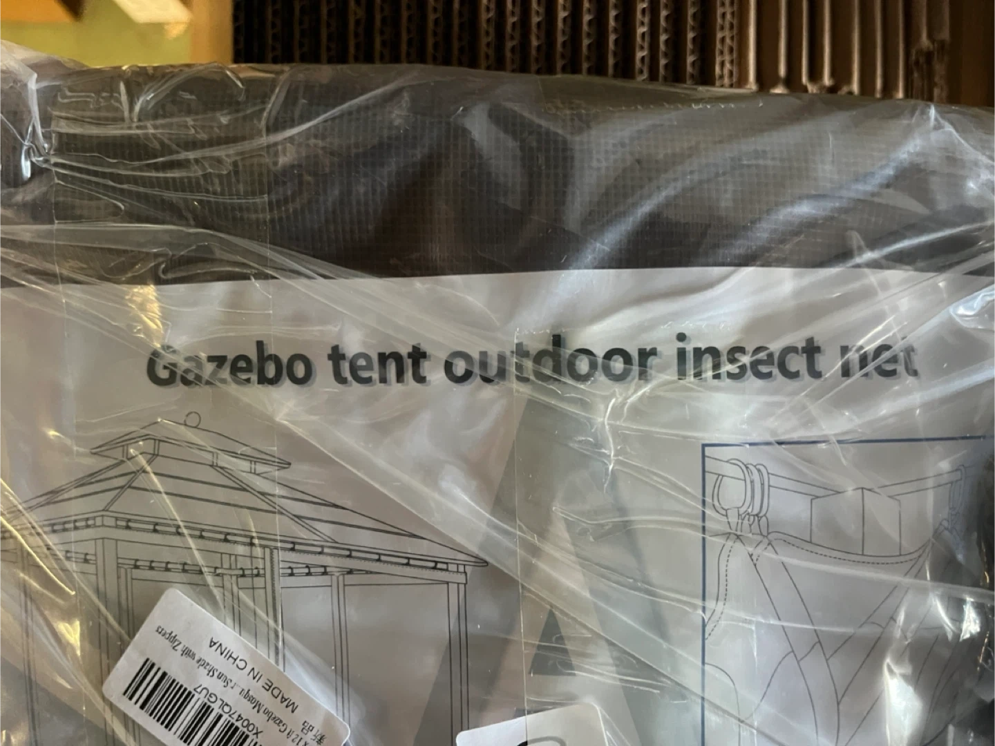 Selling a brand new gazebo tent outdoor insect net, still in its original packaging! 360*300 also includes four zippers on the tent and 48 loops to attach the mosquito net to the support rail
