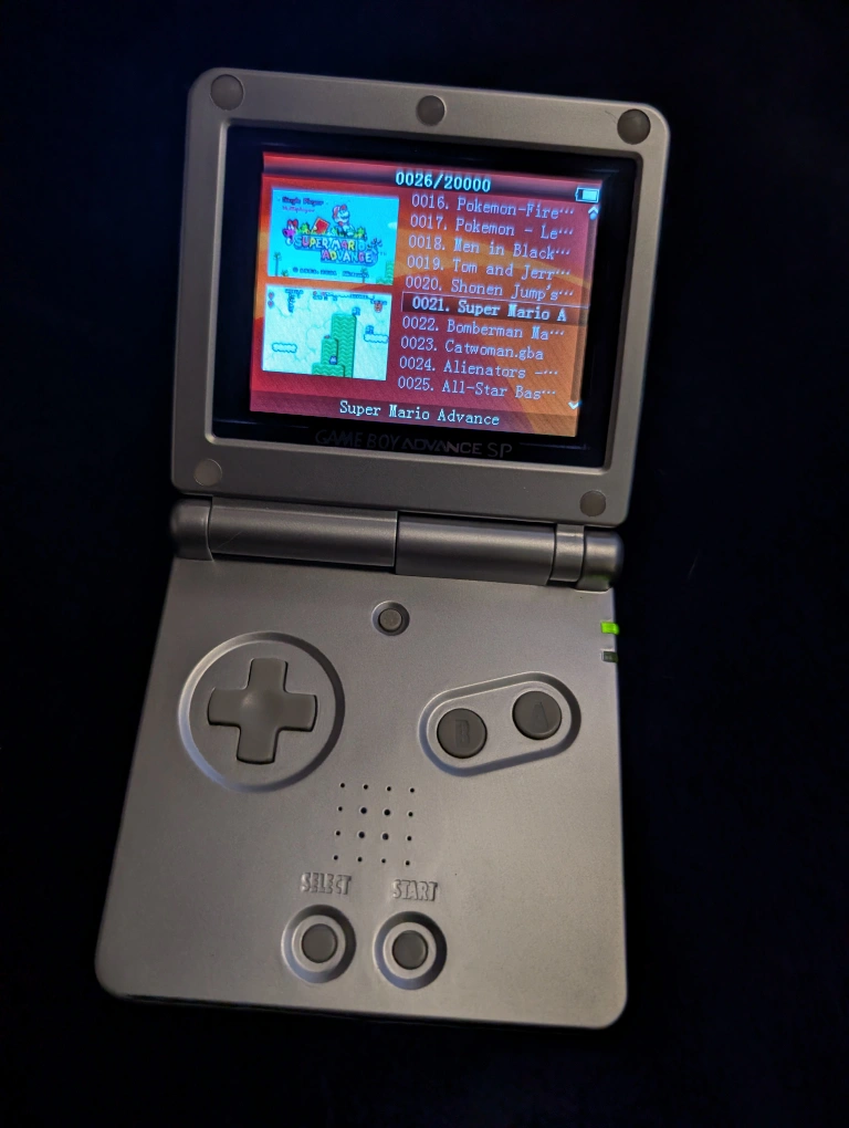 It looks like a classic silver Game Boy Advance SP, and does actually play GBA games, but it's a clone with a bunch of loaded games. Doesn't play GBC games and uses same AC adapter as the GBASP (not included but you can grab one cheap at Gamedeals).
