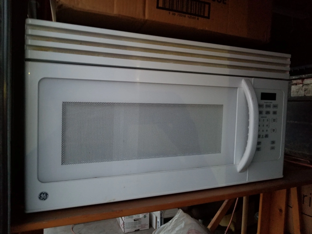 Selling a GE microwave/hoodfan in white. Space saver above the stove and off the counter. It's in good working condition and ready for a new home! Hardly used, it was a model.