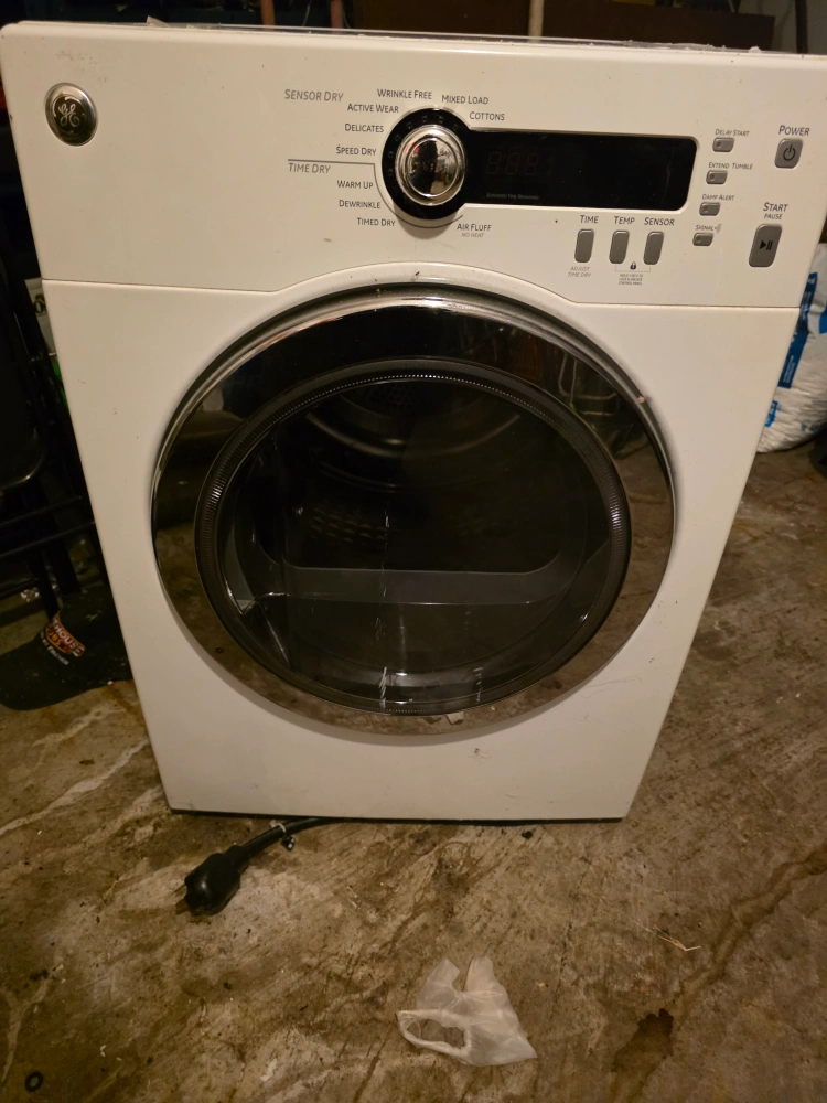 Selling a used GE dryer. It's in good working condition and ready for a new home. It features multiple settings for different types of loads, including: - Wrinkle Free - Mixed Load - Active Wear - Delicates It also has a sensor dry feature.