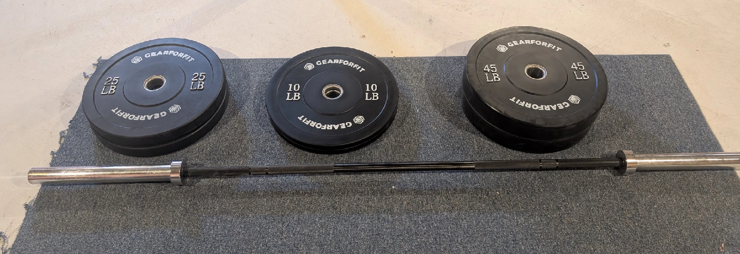 Selling a set of Gearforfit weight plates in various sizes: 25 lb, 10 lb, and 45 lb. Also included is a olympic barbell. Perfect for setting up your home gym! Both plates and barbel are in very good condition.