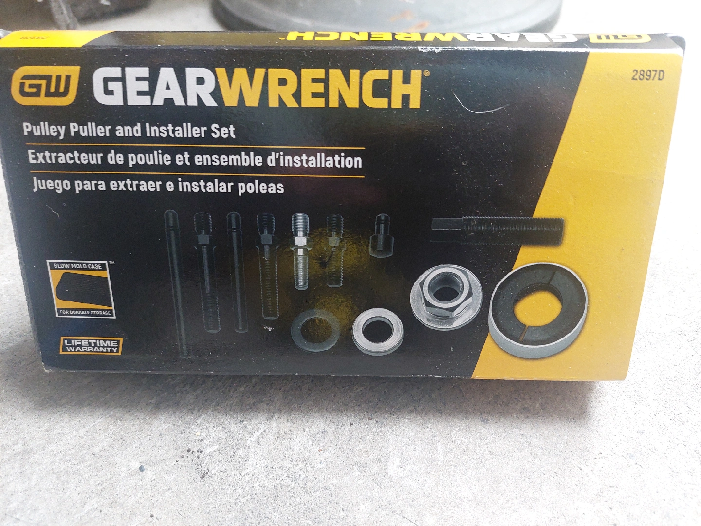 Selling a GEARWRENCH Pulley Puller and Installer Set, model 2897D. It comes in a blow mold case for durable storage and has a lifetime warranty