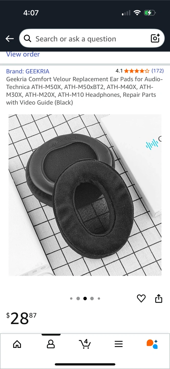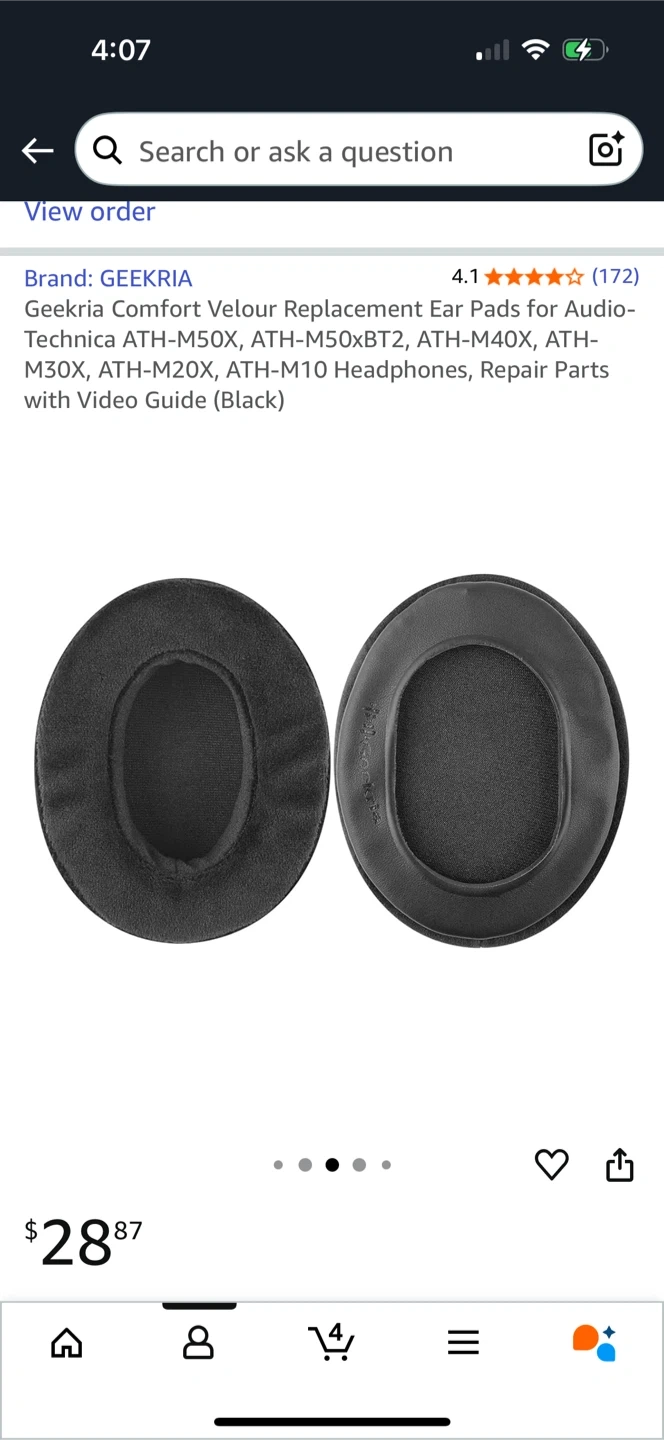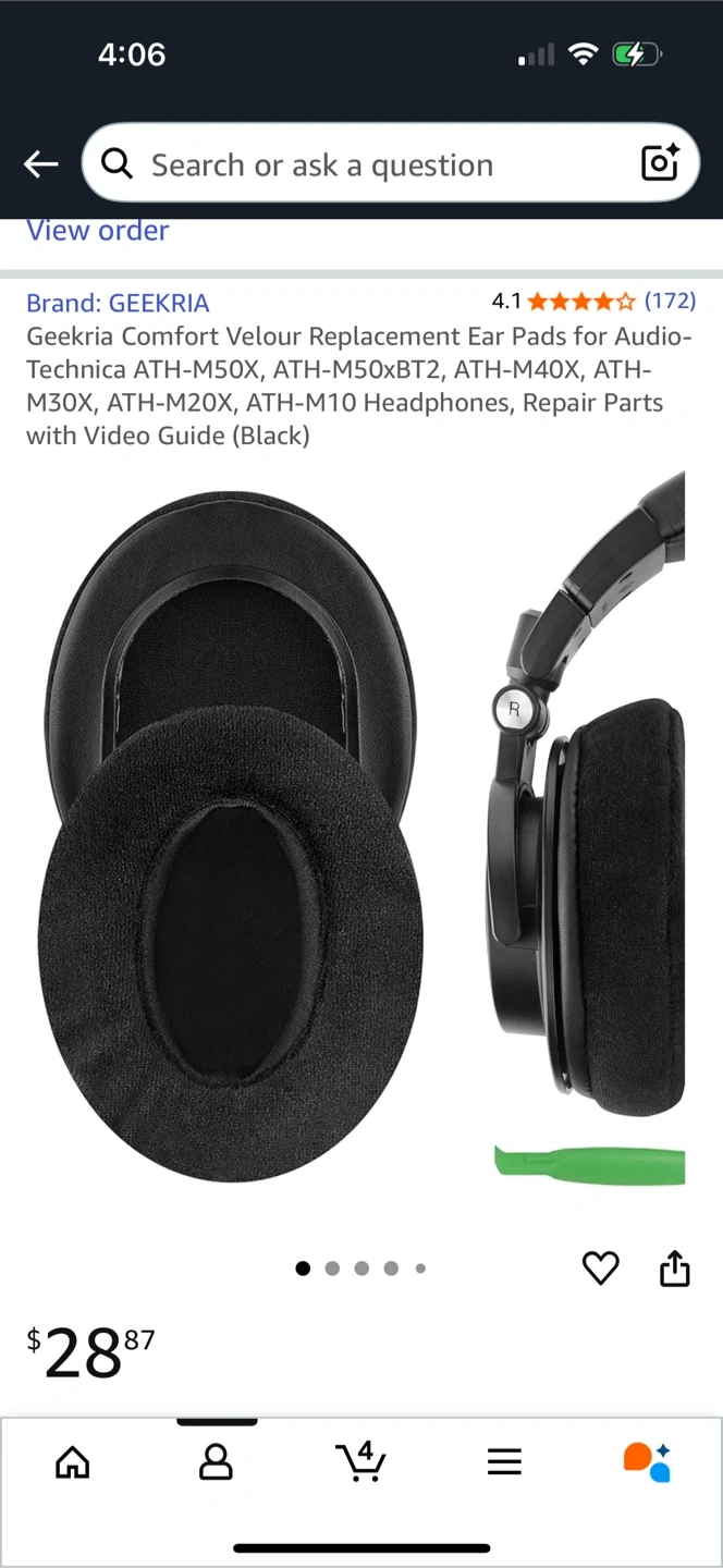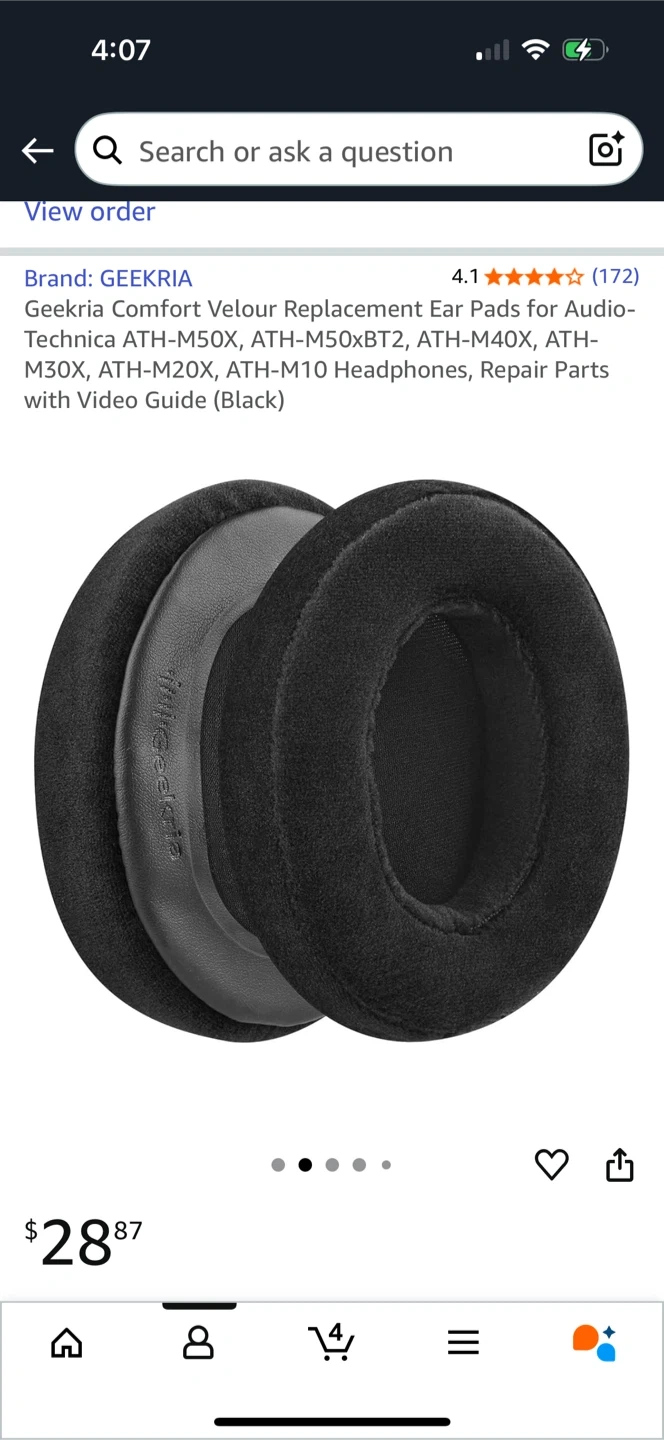 Looking to replace your Audio-Technica headphone ear pads? These Geekria Comfort Velour Replacement Ear Pads are compatible with ATH-M50X, ATH-M50XBT2, ATH-M40X, ATH-M30X, ATH-M20X, ATH-M10 headphones. They are black and come with a video guide for repair parts. Originally bought for $28.87