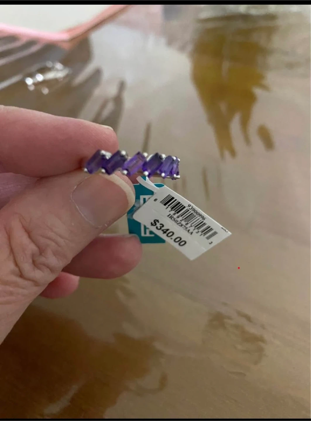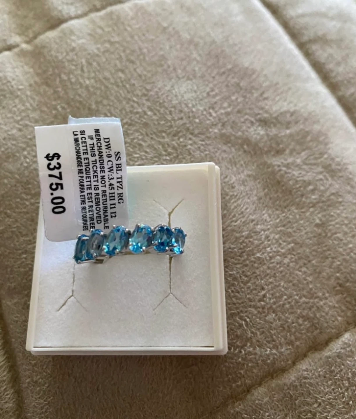 Beautiful gemstone ring available! It features a row of lovely gemstones set in a sleek design. The ring is in excellent condition and ready to add a touch of elegance to your style. Originally tagged at $375.00 . Silver with amethyst stone or topaz stone both size 7.