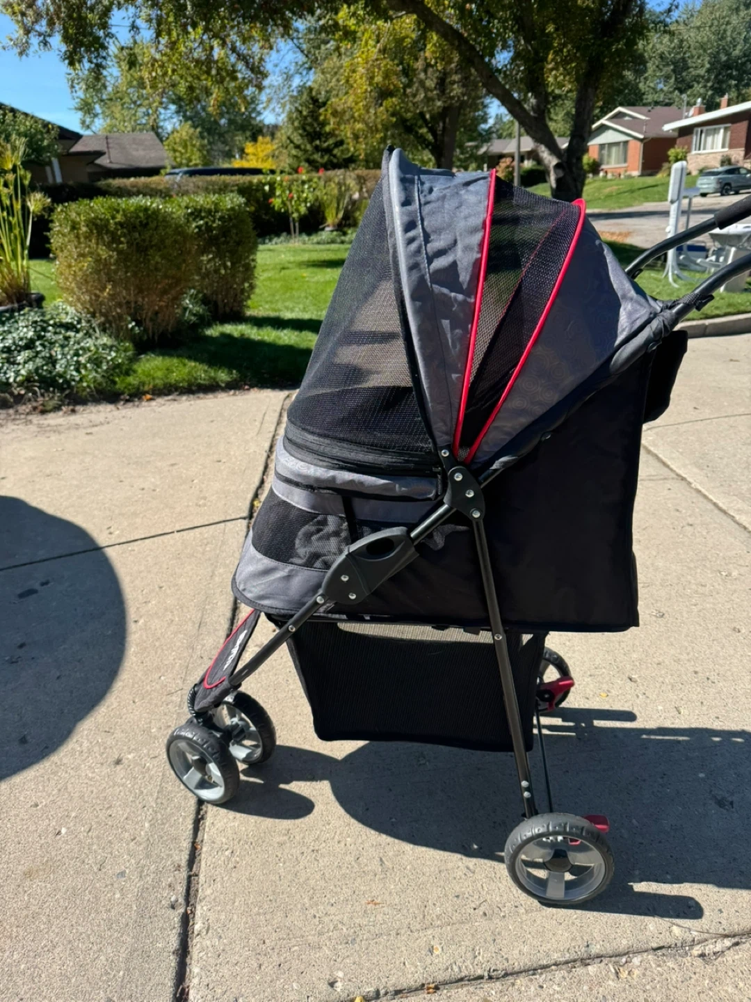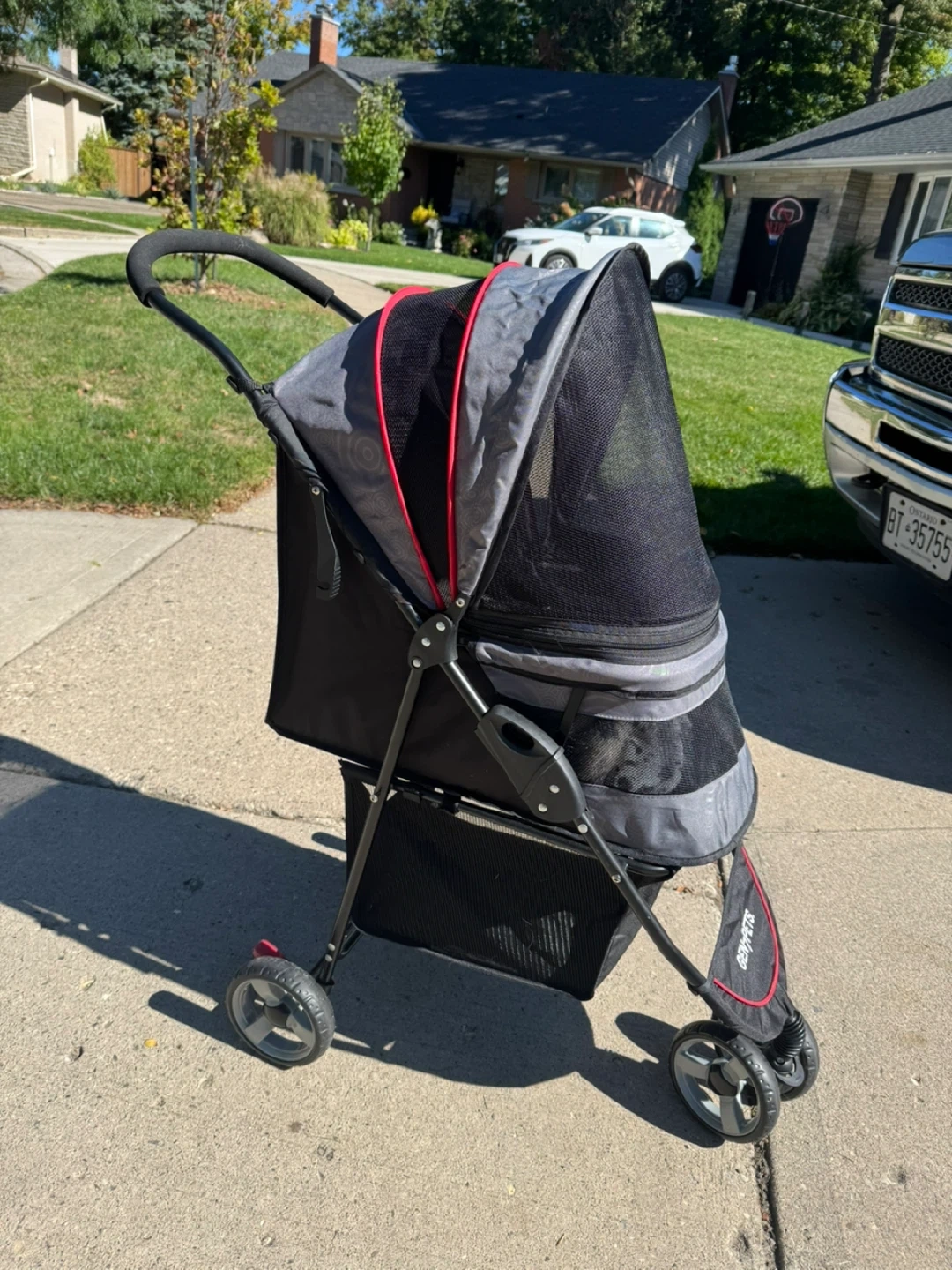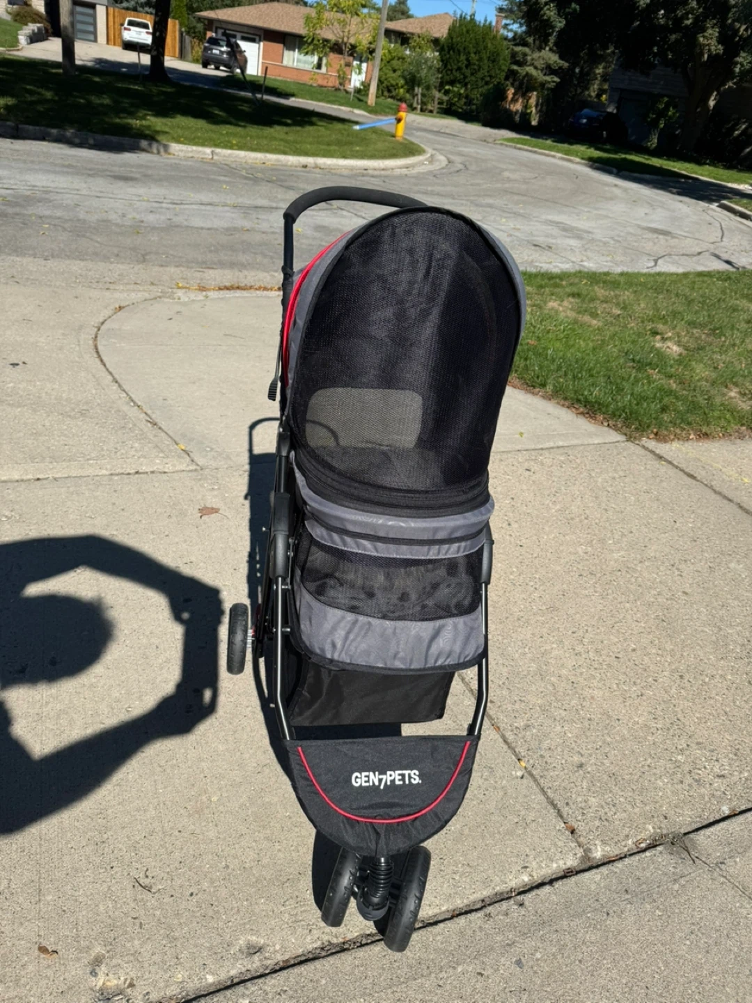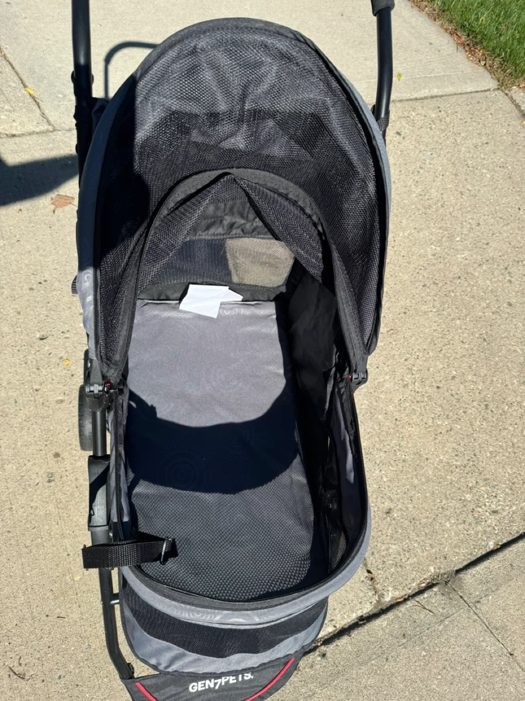 Selling a Gen7Pets pet stroller in black and grey. This stroller is perfect for taking your furry friend on walks or errands. It's in great condition and ready for a new home!