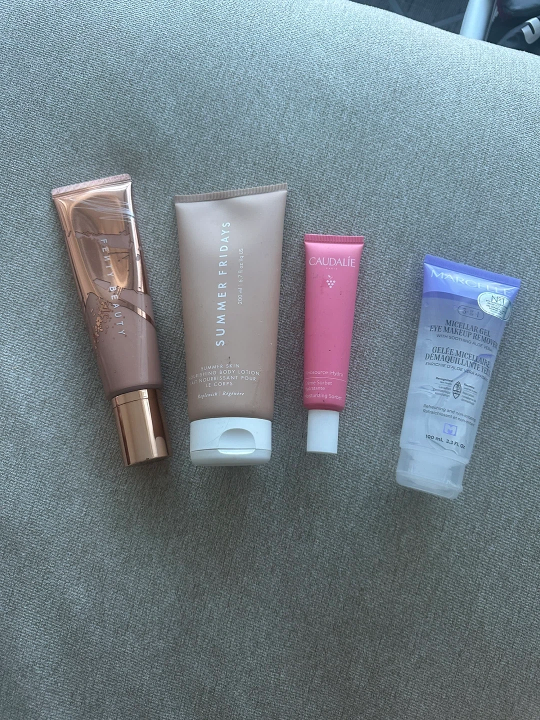 Fenty Beauty body luminizing tint - shade pearl swirl - only used maybe twice Summer Fridays body lotion - used a few times Caudalie moisturizer - used a few times Marcelle micellar gel eye makeup remover- never used Too faced boudoir eyes- 3 colours used once Too faced secret Santa - 1 colour used once Kylie skin lip mask- never used MAC hyper real Skin Canvas Balm- never used Taking offers! Pickup Islington & Queensway