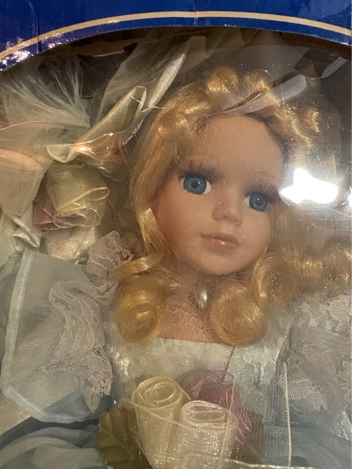 New in box porcelain doll. Beautiful for collectors and children alike. Pick up in Chippawa.