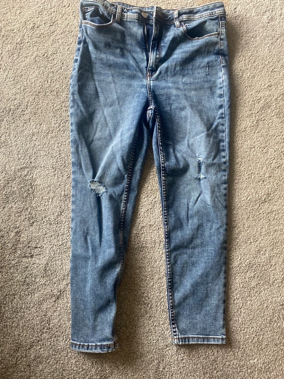 Selling a pair of George size 8. Jeans. They are in good condition and have a stylish, worn look with some intentional rips. Perfect for a casual outfit!