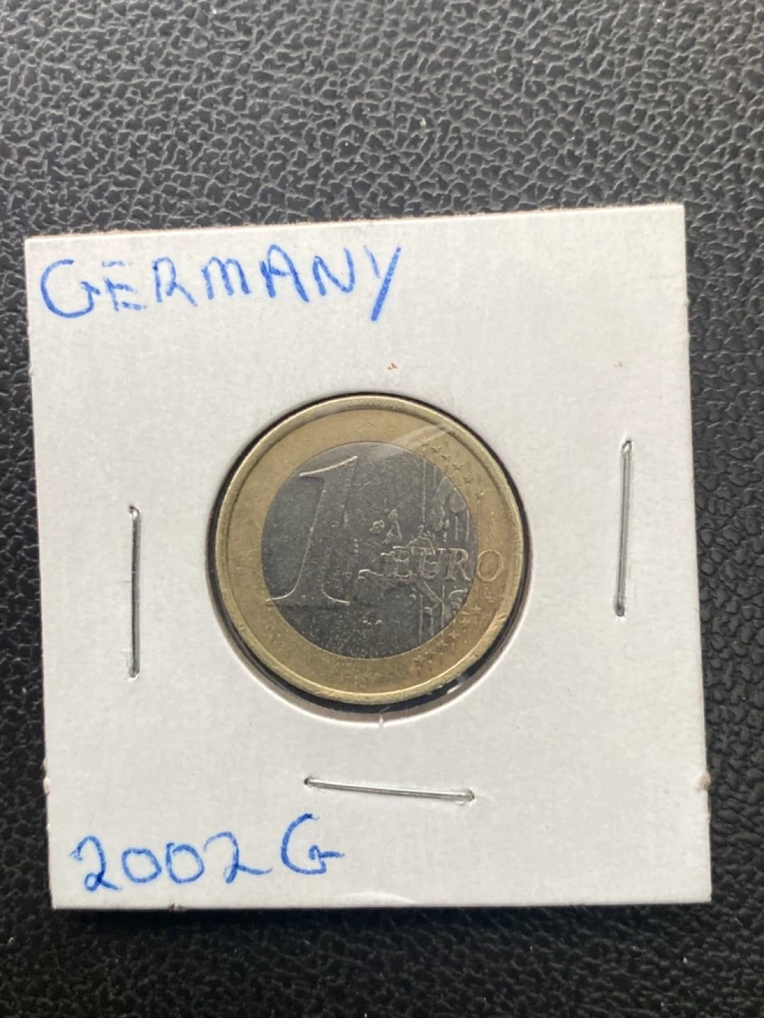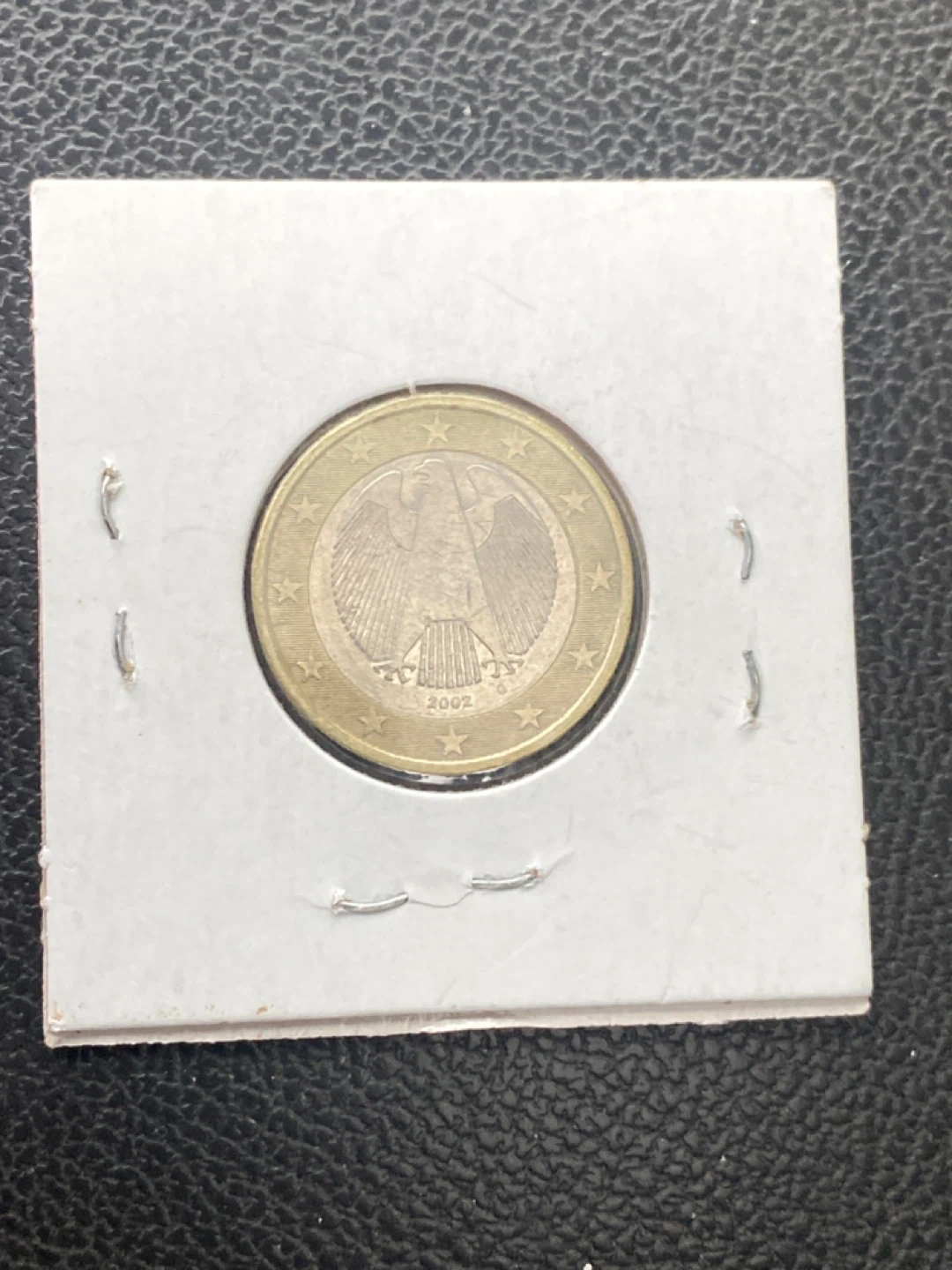 Selling a 1 Euro coin from Germany, minted in 2002. It's in a protective holder.