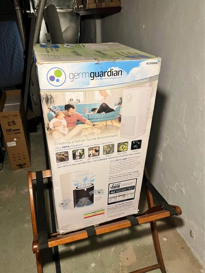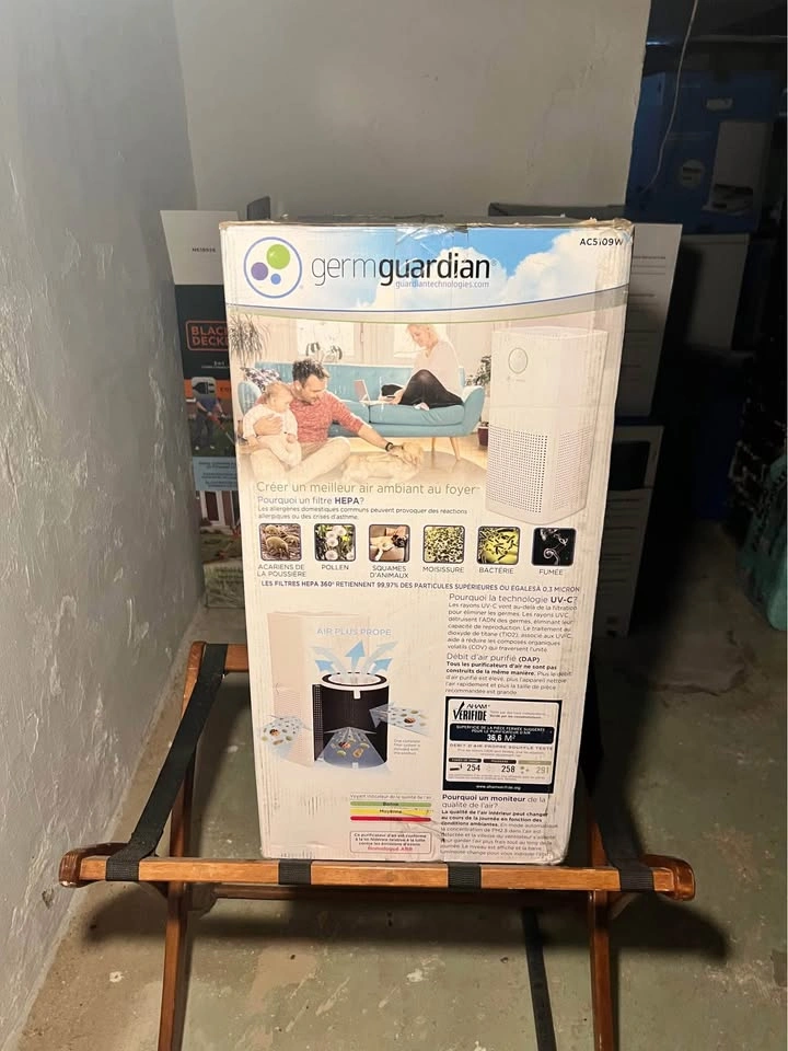 Features: 360-degree HEPA filter to capture dust and allergens Air quality monitor with a 3-stage colour changing indicator display 4-speed fan Auto mode to automatically adjust between the 4 fan speeds UV-C light technology that works with titanium dioxide Optional ozone safe ionizer to help boost allergen control Sleep mode to help darken the room for sleeping 8-hour timer equipped with child lock Filter replacement reminder Specifications: Dimensions (L × W × H): 28.3 cm × 28.3 cm × 59.6 cm (11.14 in × 11.14 in. × 23.46 in.) Weight: 5.95 kg (13.12 lb.) Pick up available Delivery available