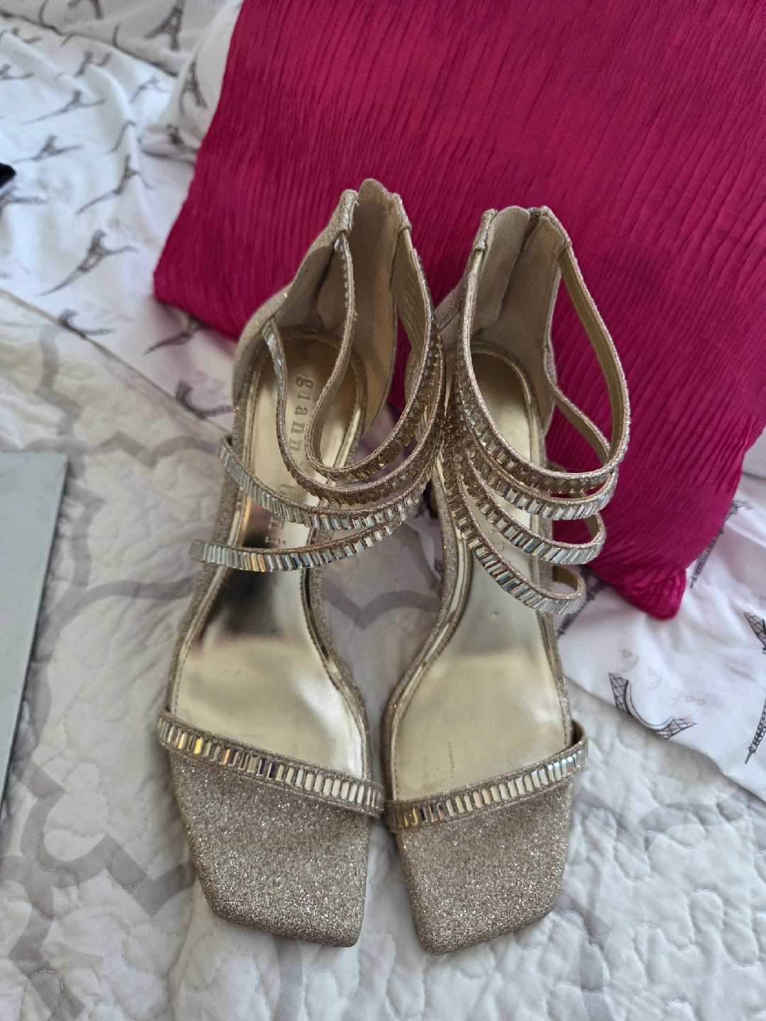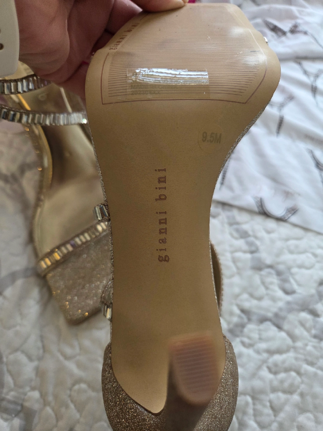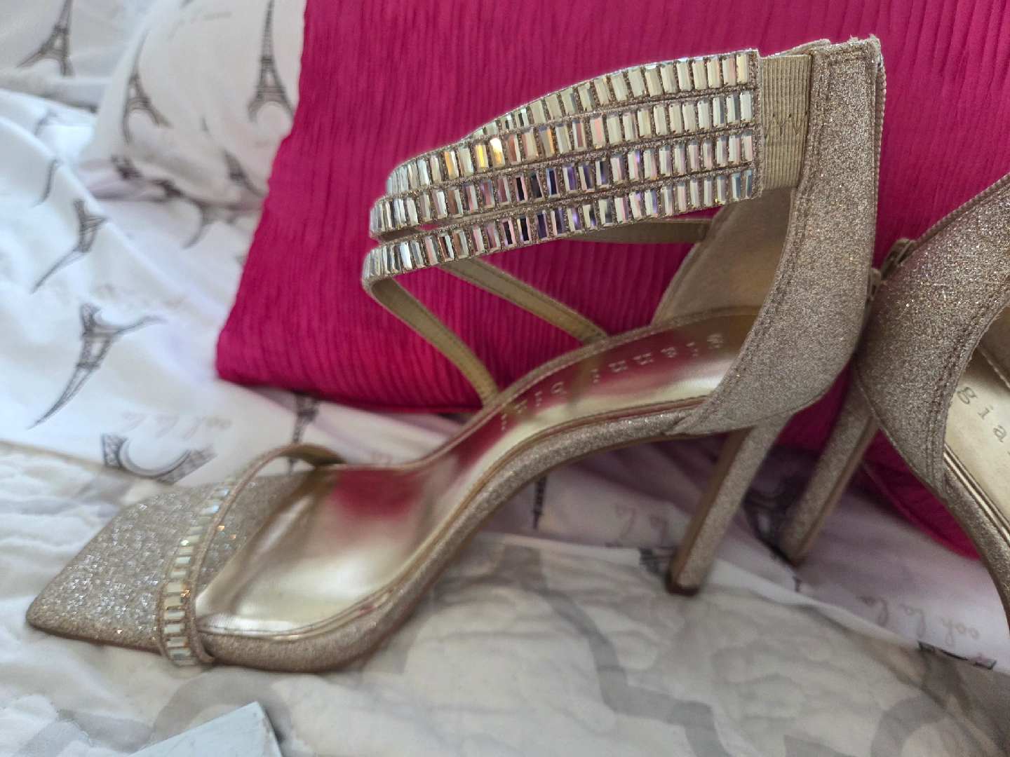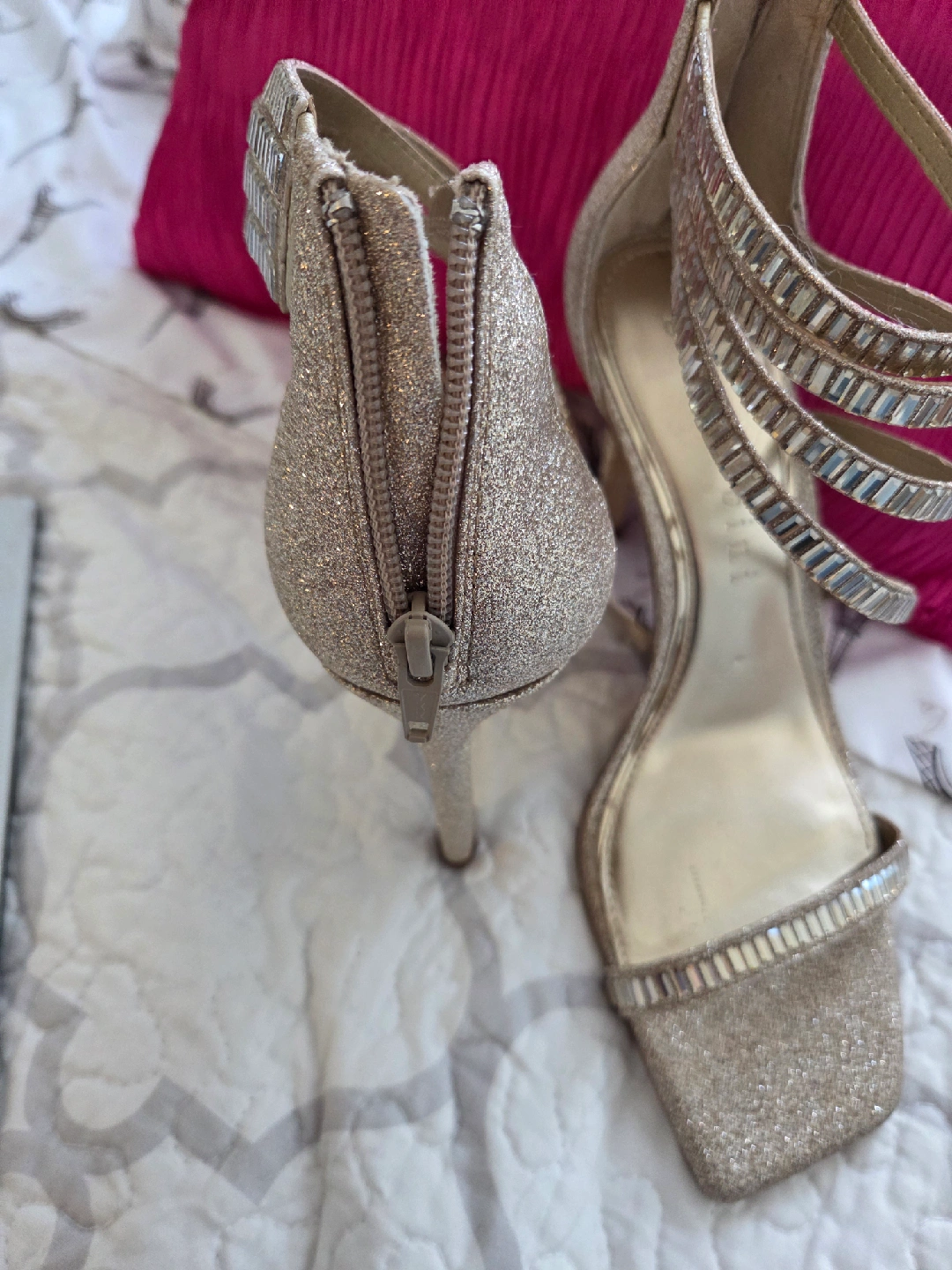 Selling a pair of Gianni Bini heels in a sparkly gold colour. They are a size 9.5 and feature a zipper at the back. Perfect for a night out or a special occasion! Worn for one hour for pictures.