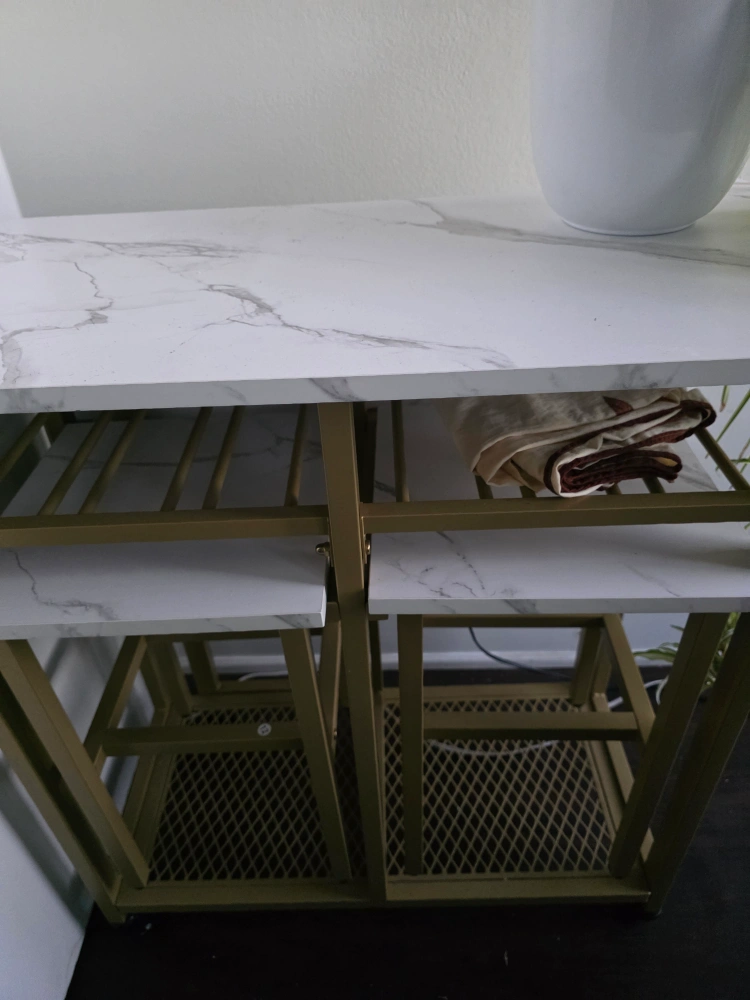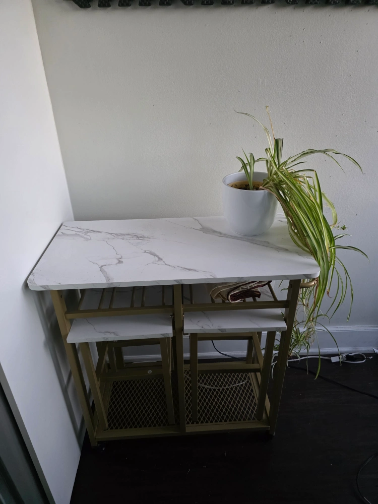 Selling a new 3-Piece Foldable Dining Table Set with 2 Stools. This extendable dining table features a 6-bottle wine rack, shelves, and a side pushing handle, includes PP universal wheels and 2 lockable wheels for stability and easy movement. Bought it in March for $179 and not used since then, now selling because I'm moving out of city. Amazon listing - https://a.co/d/gqKtdjm