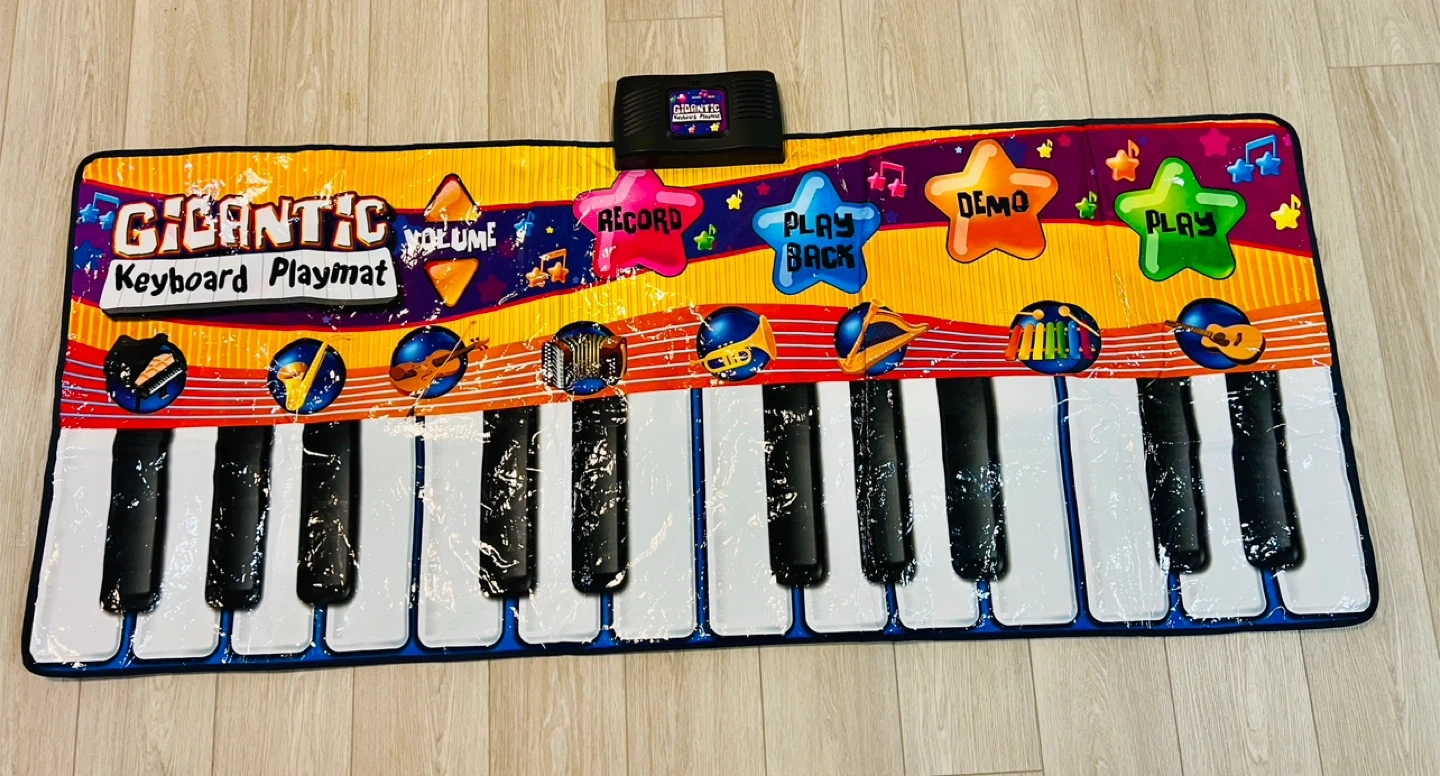 Fun Gigantic Keyboard Playmat for kids! Features a variety of instrument sounds, record and playback functions, and demo songs to explore. Great for introducing music and movement to little ones
