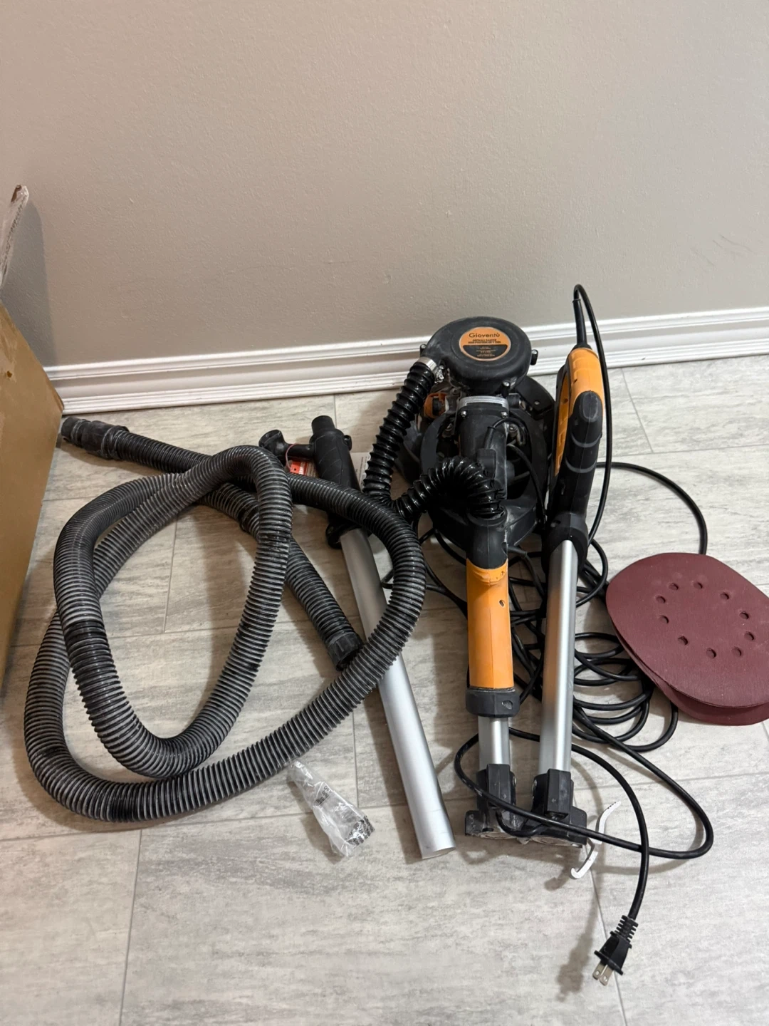 Gioventu Drywall Sander, 6.5-amp Powerful Electric Sander Description: Very lightly used 6.5-amp powerful electric sander! Mod is Gioventu normally retails $450 before taxes! Missing the dust bag includes 5 drywall sanding paper! Key Features: 7 Variable Speed 900-1800RPM 26’ Power Cord Auto Dust Absorption 8-2/5 inch floating head that can swivel 360 degrees Extendable Handle LED Light Price: $200 Local Pickup in Westmount Delivery & Shipping Available — TDRYL107