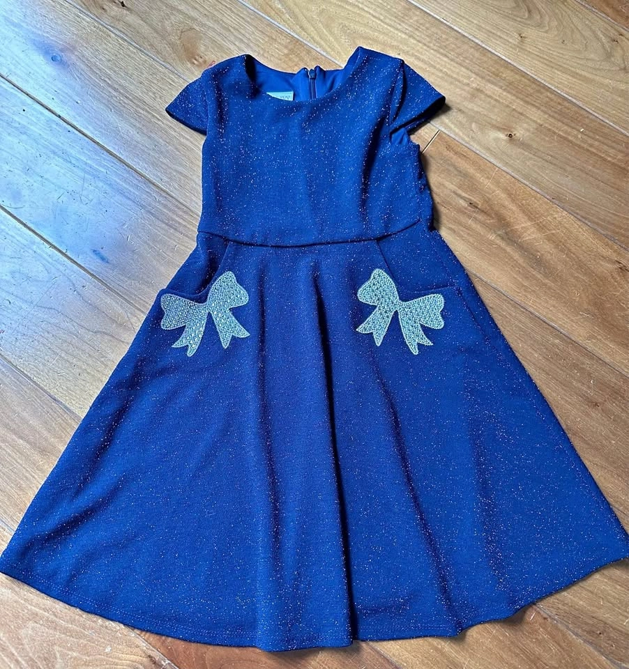 Girls Beautiful Iris & Ivy Dress Navy Blue with lots of Sparkle Rhinestone Bows A Line Shape Size 6 Like NEW! Flexible Porch PU South Arm