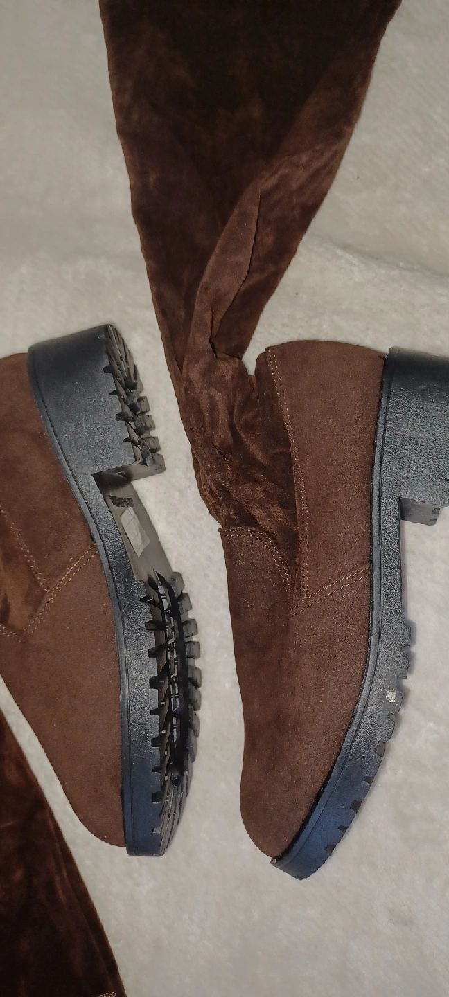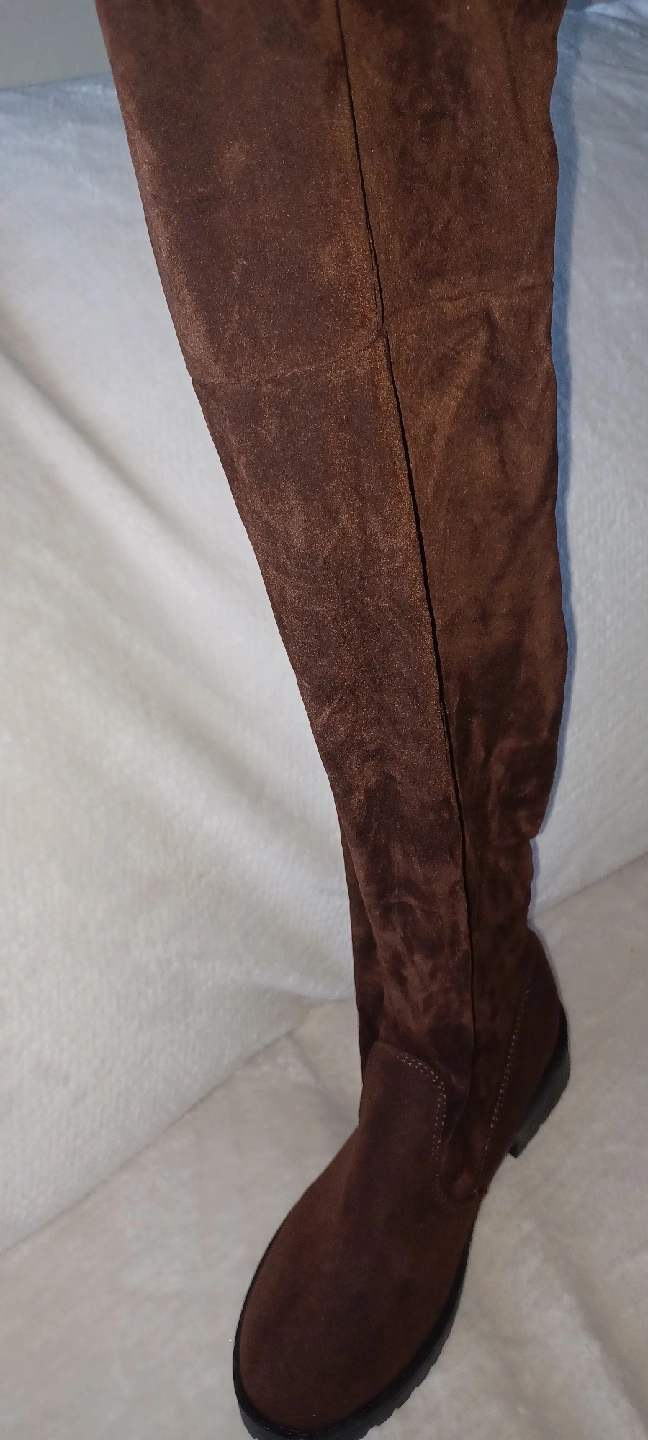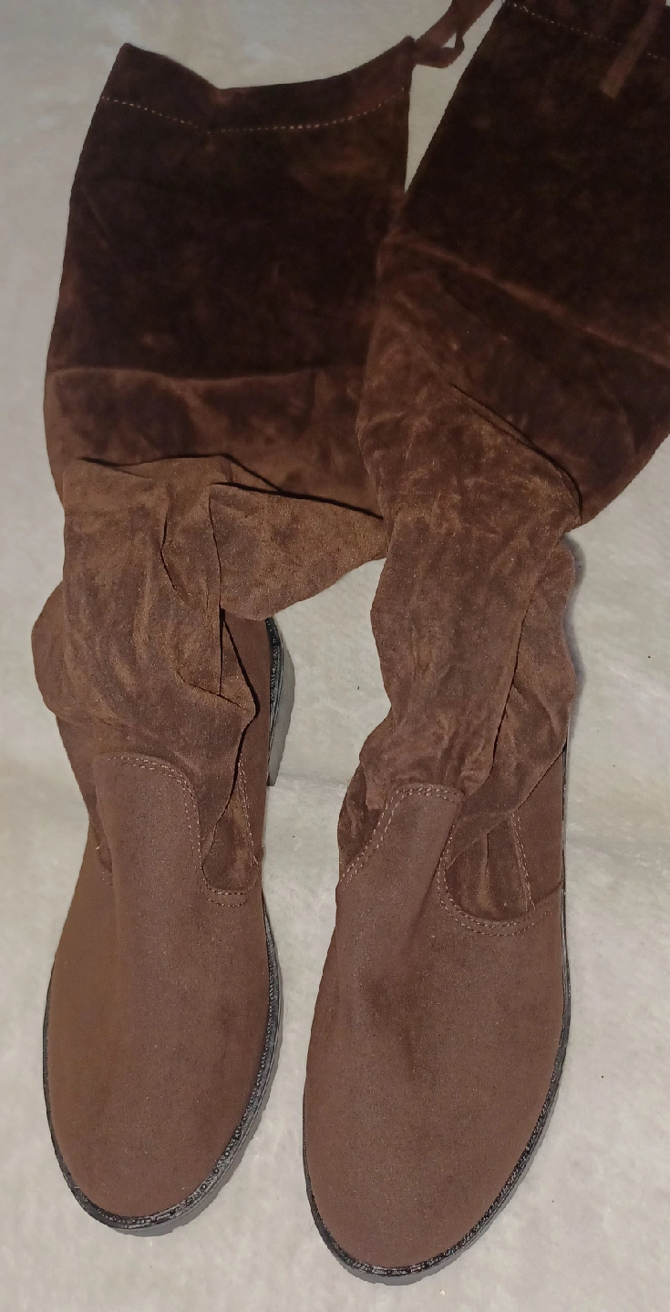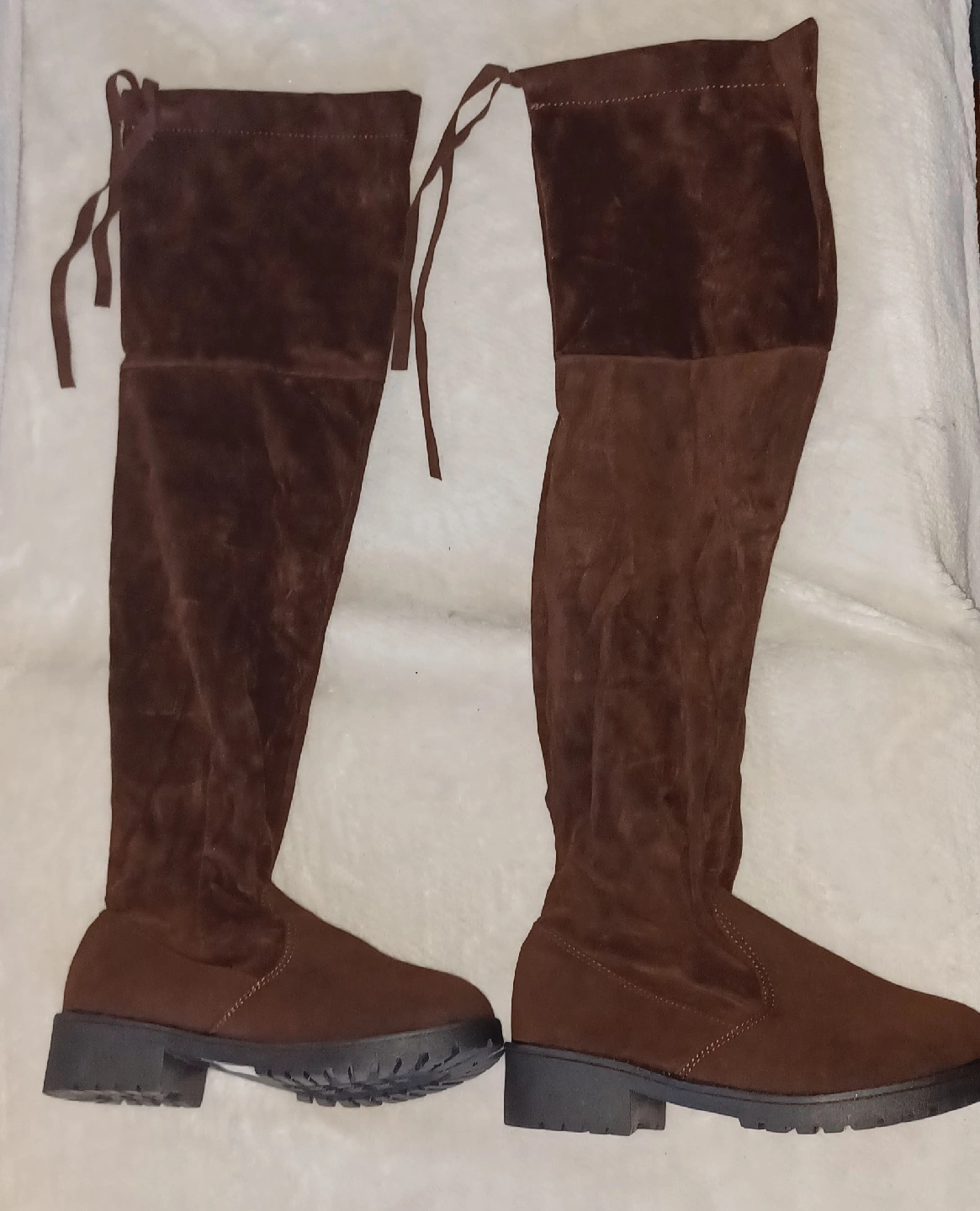 Selling a pair of girls brown thigh-high boots. They are brand new never worn and have a tie at the top. Perfect for fall and winter!