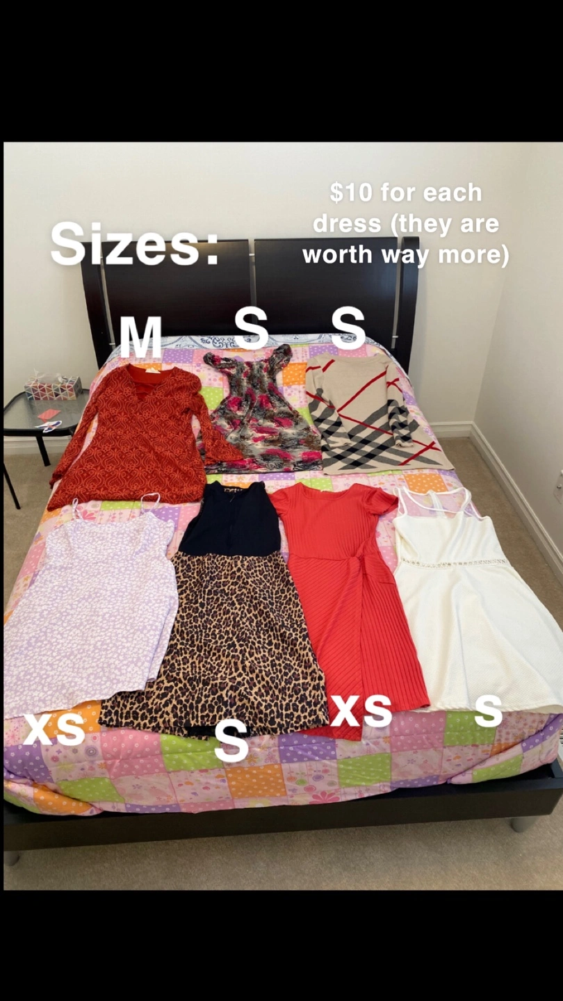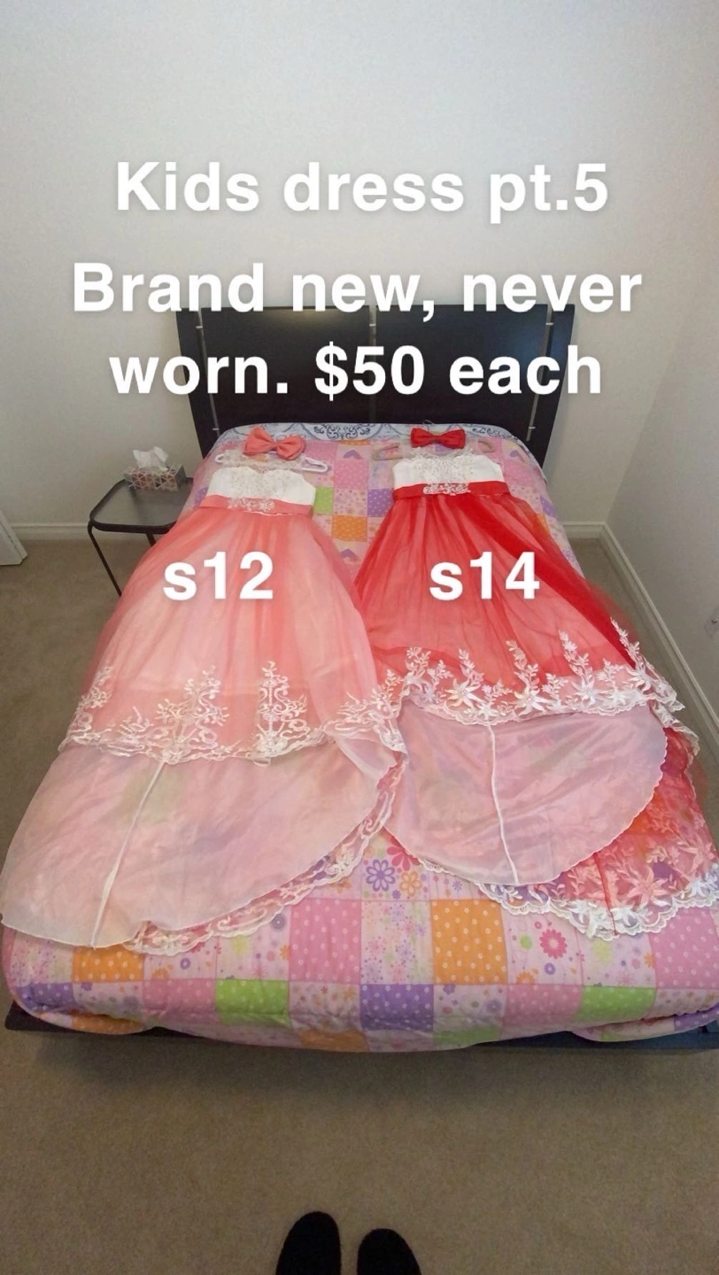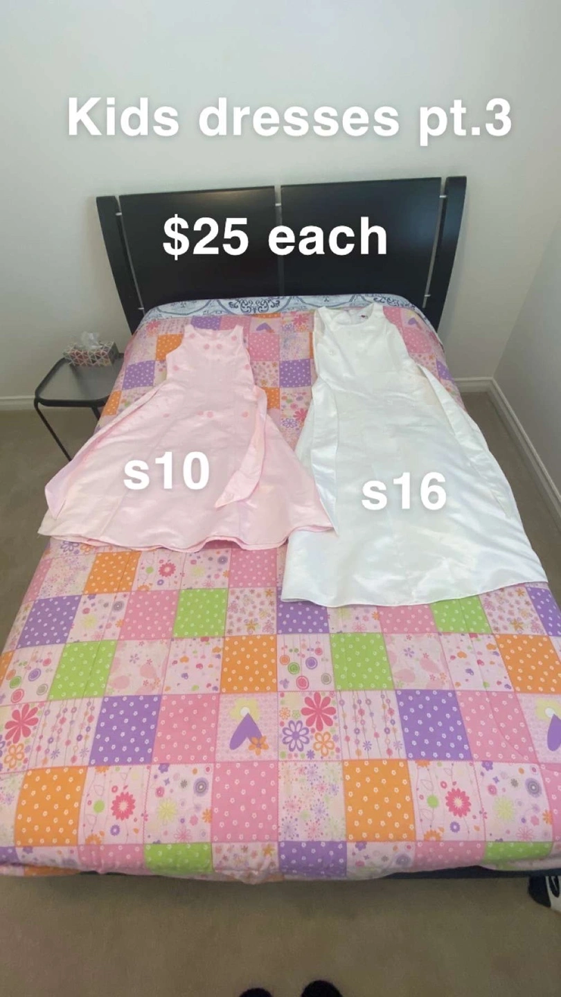 Selection of girls' dresses, different colours and patterns. Sizes vary. Prices range from $10 to $50. Some dresses are new with tags. If you’re interested please call me at 403-771-0585.