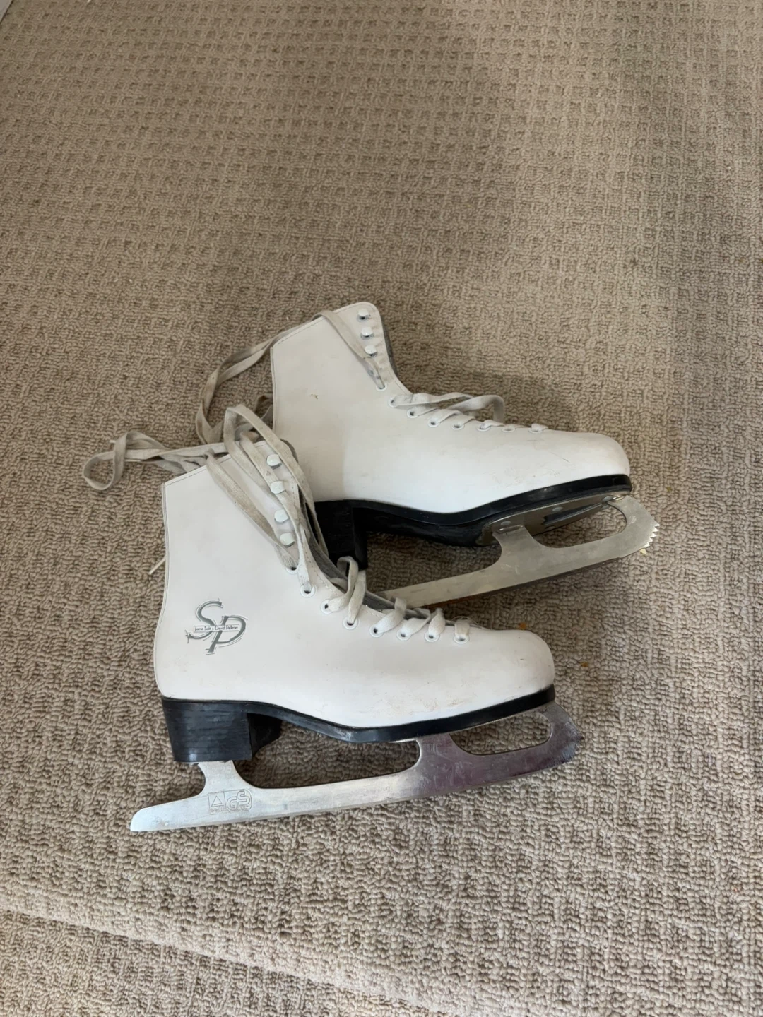 Selling a pair of SP ice skates. They're white and ready for the rink! Great for recreational skating or learning new skills Size 37