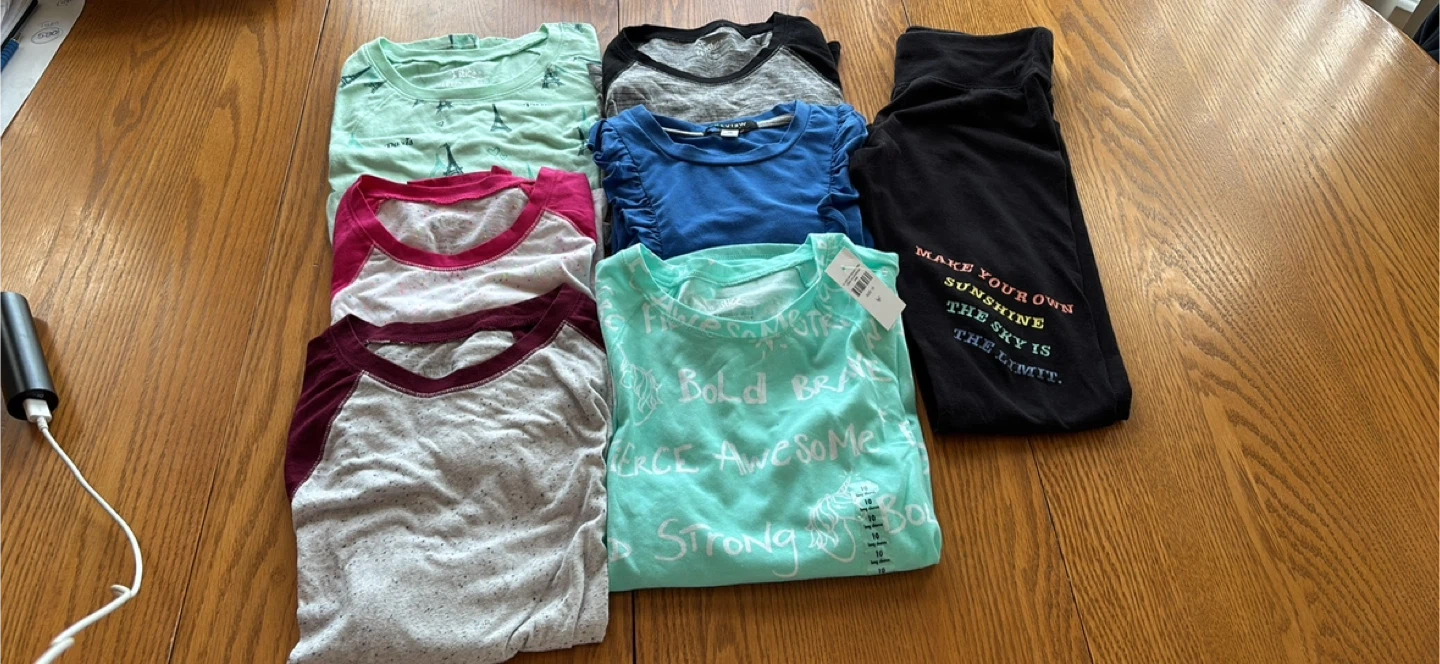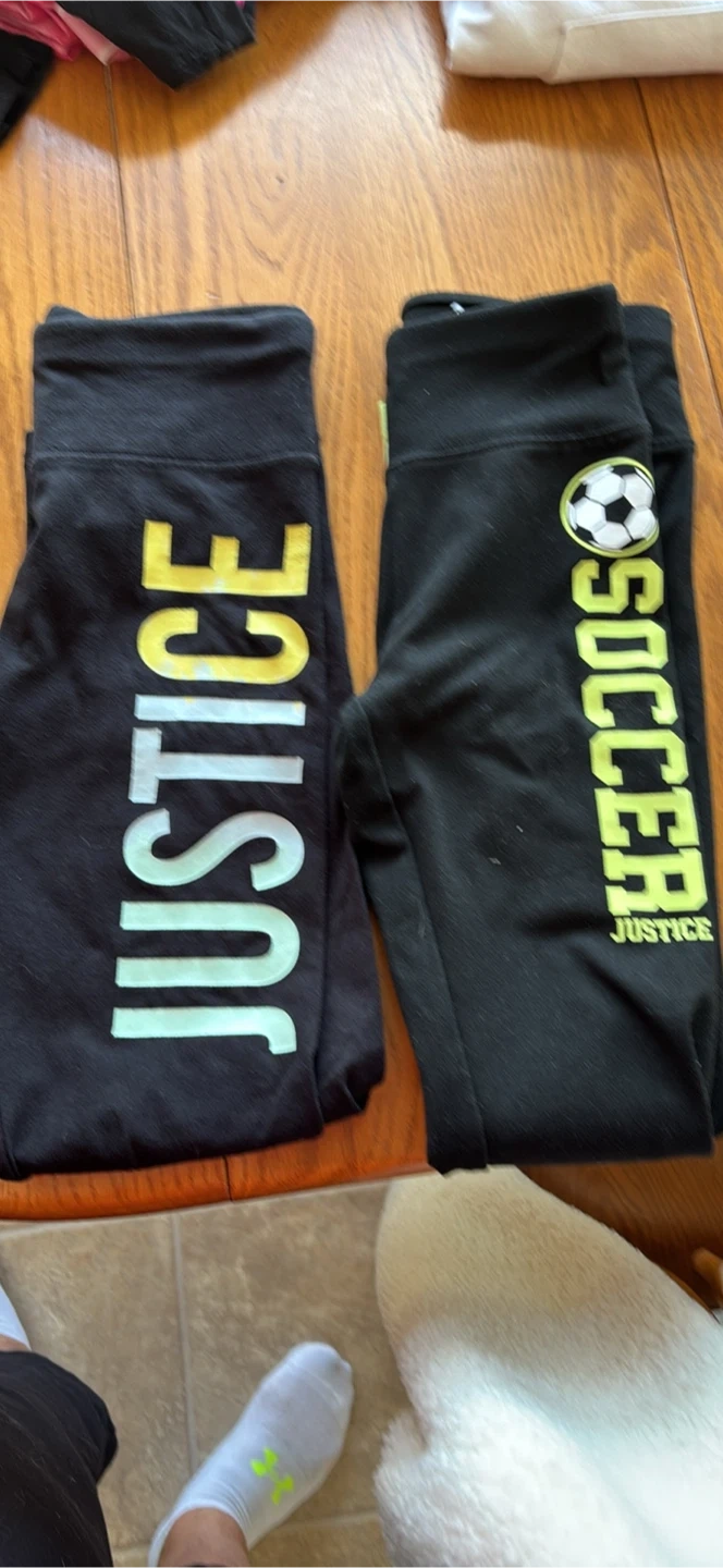 Selling a bundle of girls' clothing from Justice! Includes a variety of shirts and leggings, all in size 10/12. Perfect for everyday wear or sports activities. The leggings have fun designs like 'Justice' and 'Soccer' on them. All items are in great condition and ready for a new home! Take all for $50