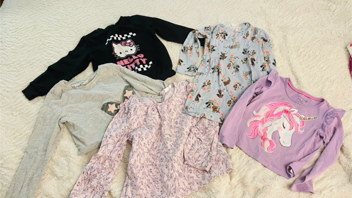 Selling a set of girls' long sleeve shirts in size 6T! There's a variety of colors and designs, including a Hello Kitty top, a cute puppy print shirt, and a fun unicorn tee. Perfect for keeping your little one comfy and stylish. Size 6 Plus added free pants Pick up in new Westminster bc