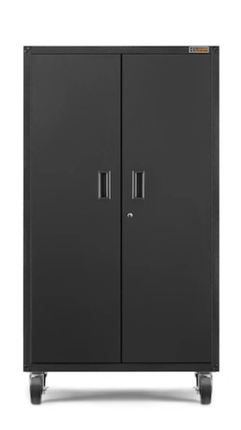 This is a Gladiator Ready-To-Assemble Steel Freestanding Garage Cabinet. It's a great storage solution for your garage or workspace!