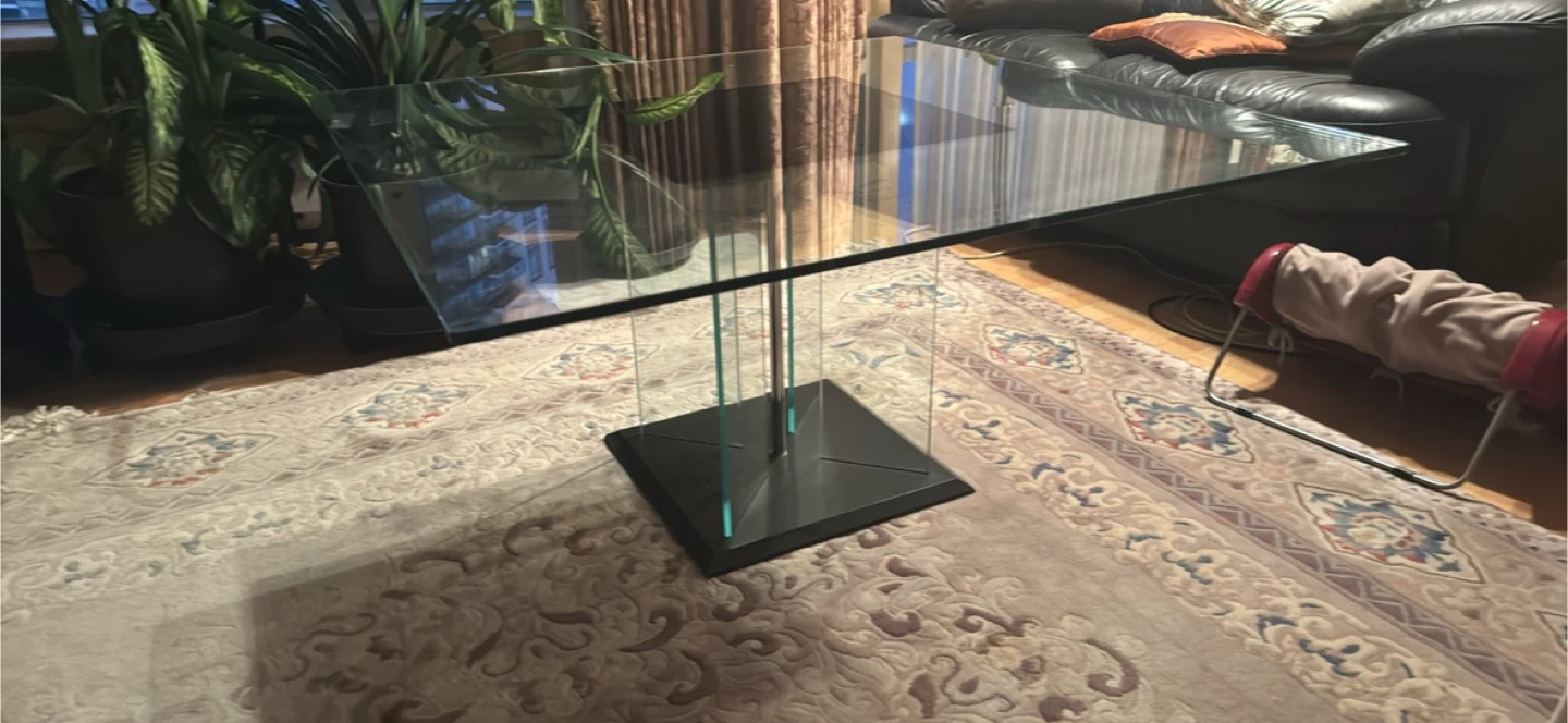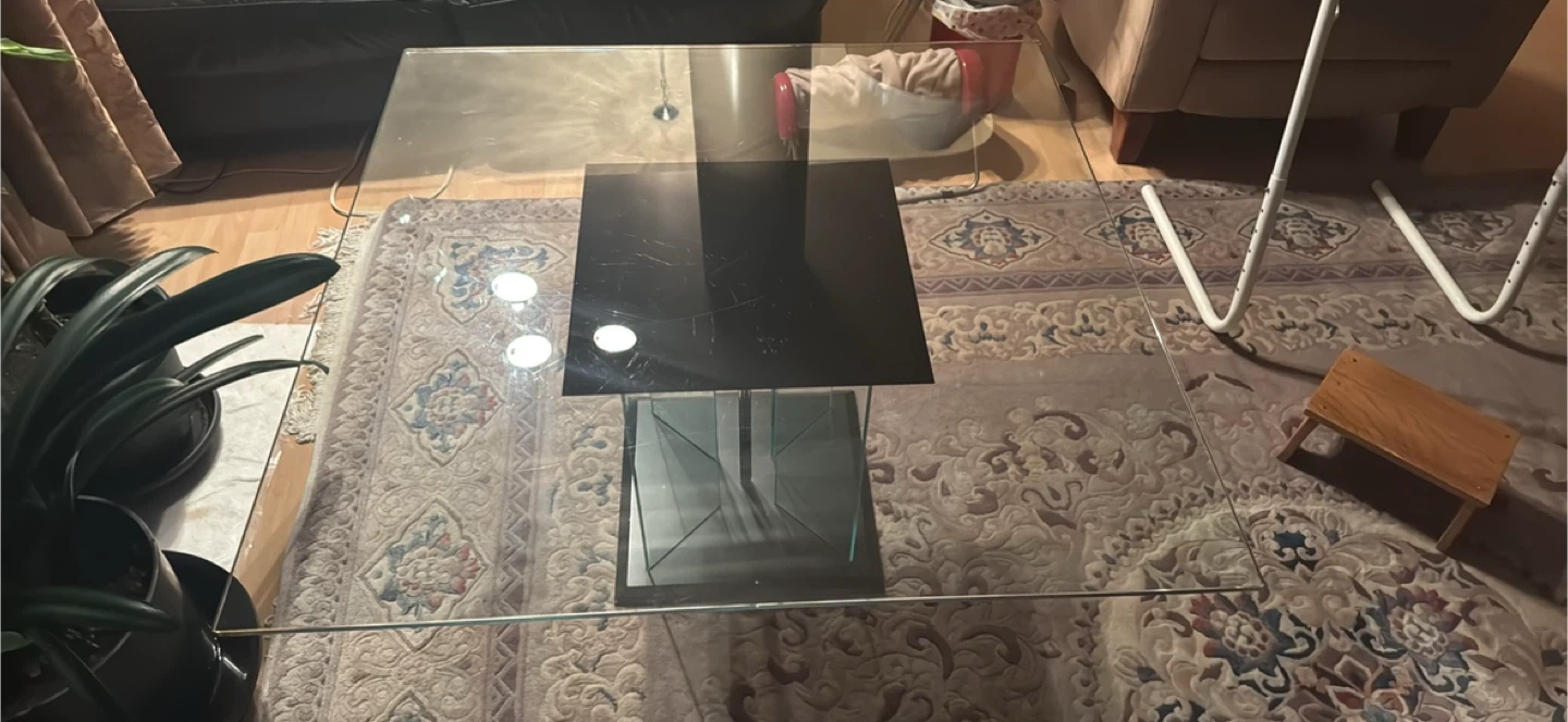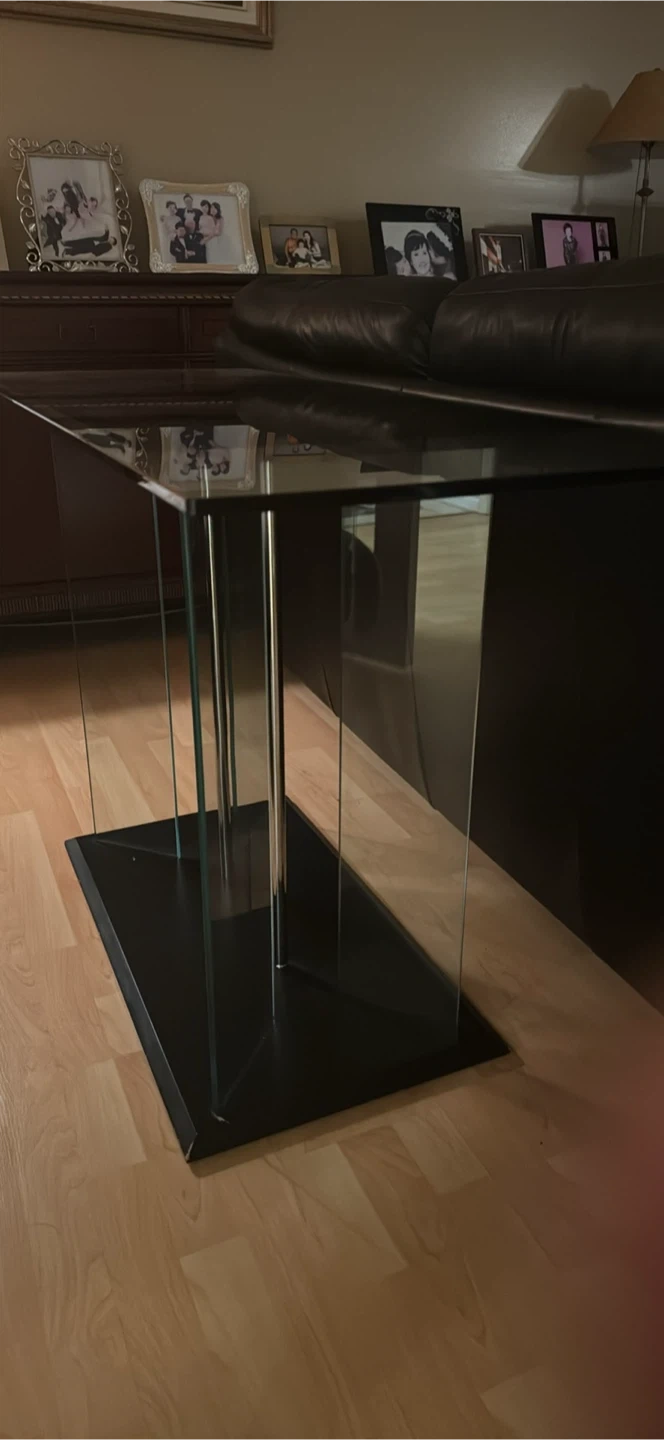 Selling 2 modern glass coffee table with a sleek design! It features a glass top and a black base. The table has a unique look and would be a great addition to any living room. There are some minor scratches on the glass top. Negotiable Pick up at Metrotown $200 each or by both for $350