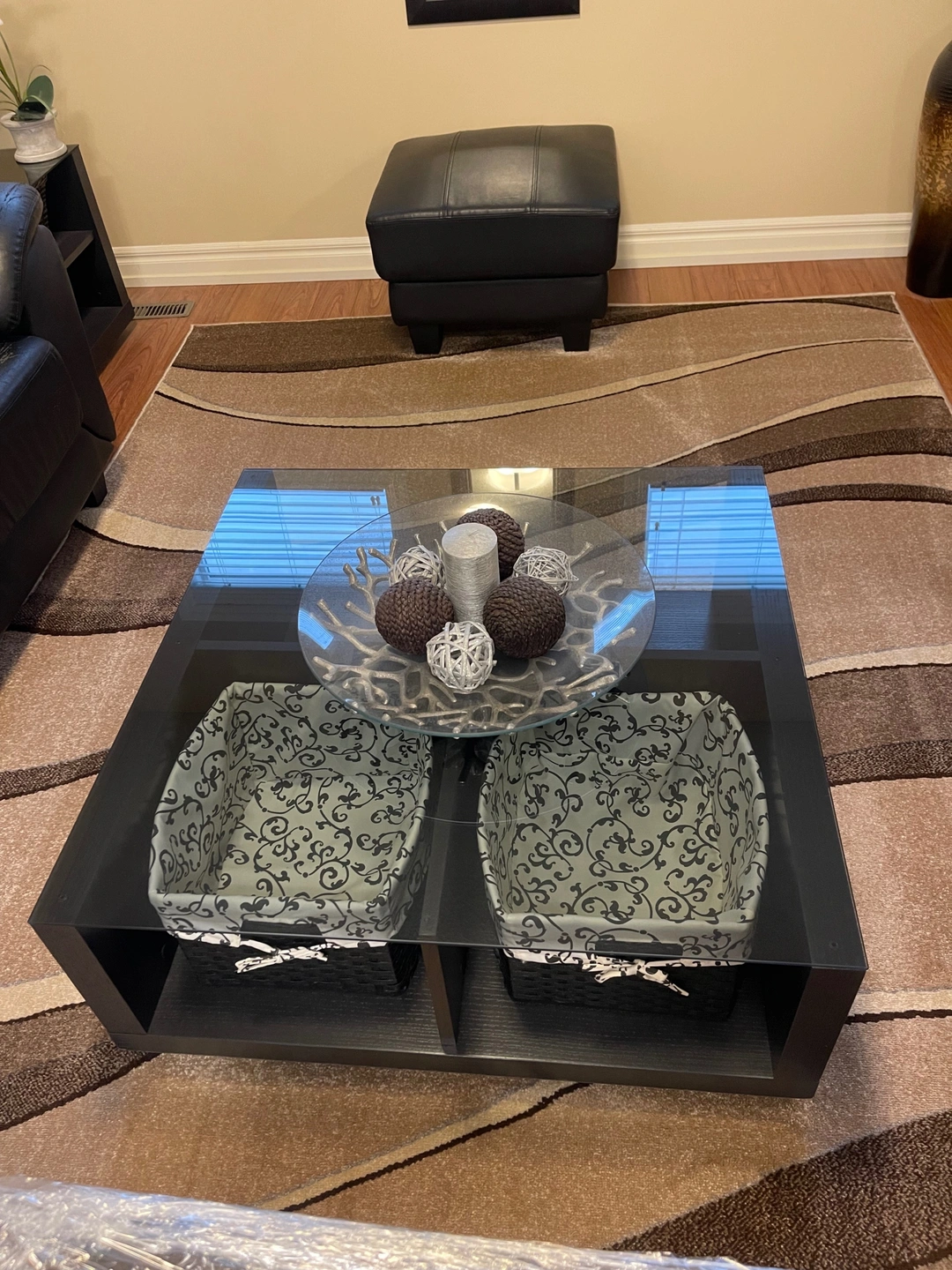 Decor not included. Moving Sale. Well kept and in very good condition, barely used. Dimensions: Coffee Table: 34” Width x 34” Depth x 18” Height Side Tables: 20” Width x 20” Depth x 20” Height Cash only. Pick up only, no delivery. OBO but no low ball offers. Cash only. If this ad is up, this item is still available.