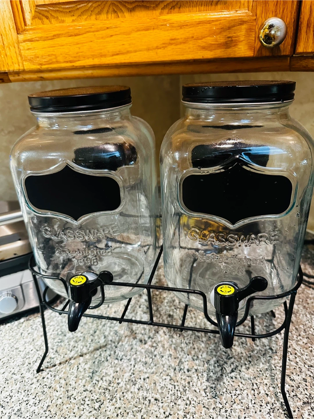 I'm selling a 3 glass drink dispenser with a spigot. It's perfect for parties, BBQs, or just keeping hydrated at home. The dispenser has a stylish diamond pattern and a sturdy spigot for easy pouring. It's in great condition and ready to use! Moving sell 💡