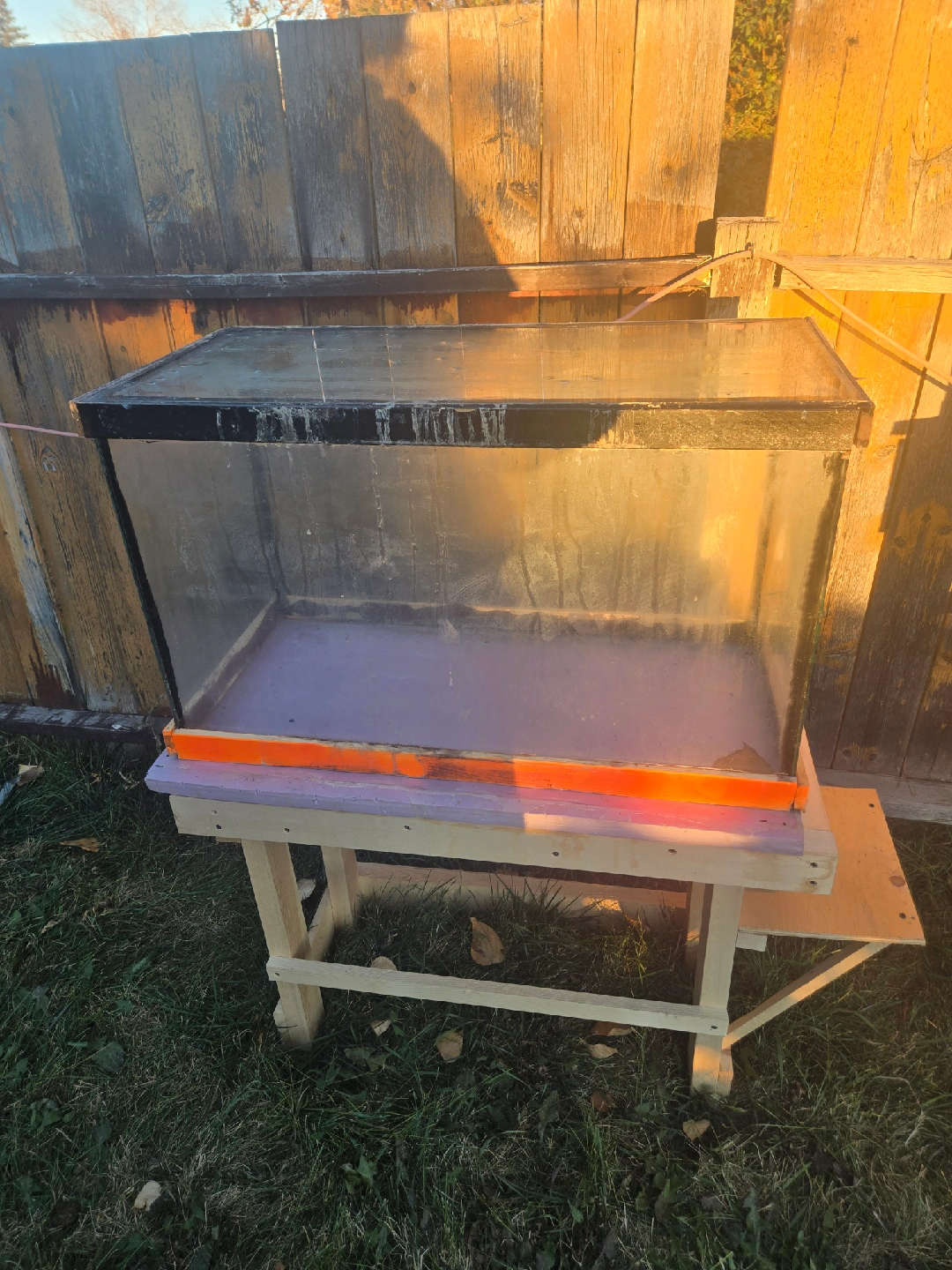 Selling a used glass fish tank with a stand. It's in fair condition and ready for a new home for your aquatic friends! Perfect for setting up a small aquarium or terrarium