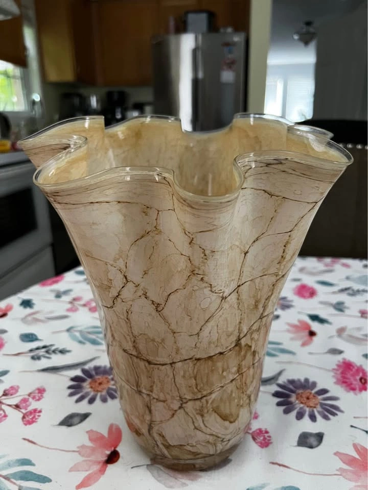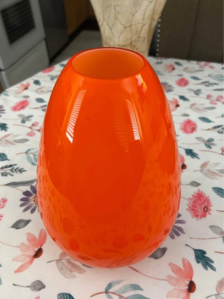 Beautiful glass vases (medium/large size) Orange vase: $15 Tan vase: $20 Or both for $30!