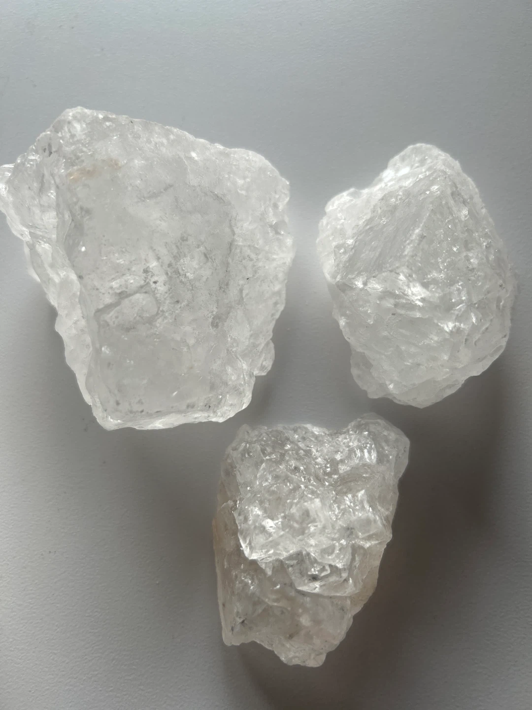 Here's a glass jar filled with white crystals. It's a simple decorative piece that could add a unique touch to your space. The jar is in good condition and ready to find a new home!